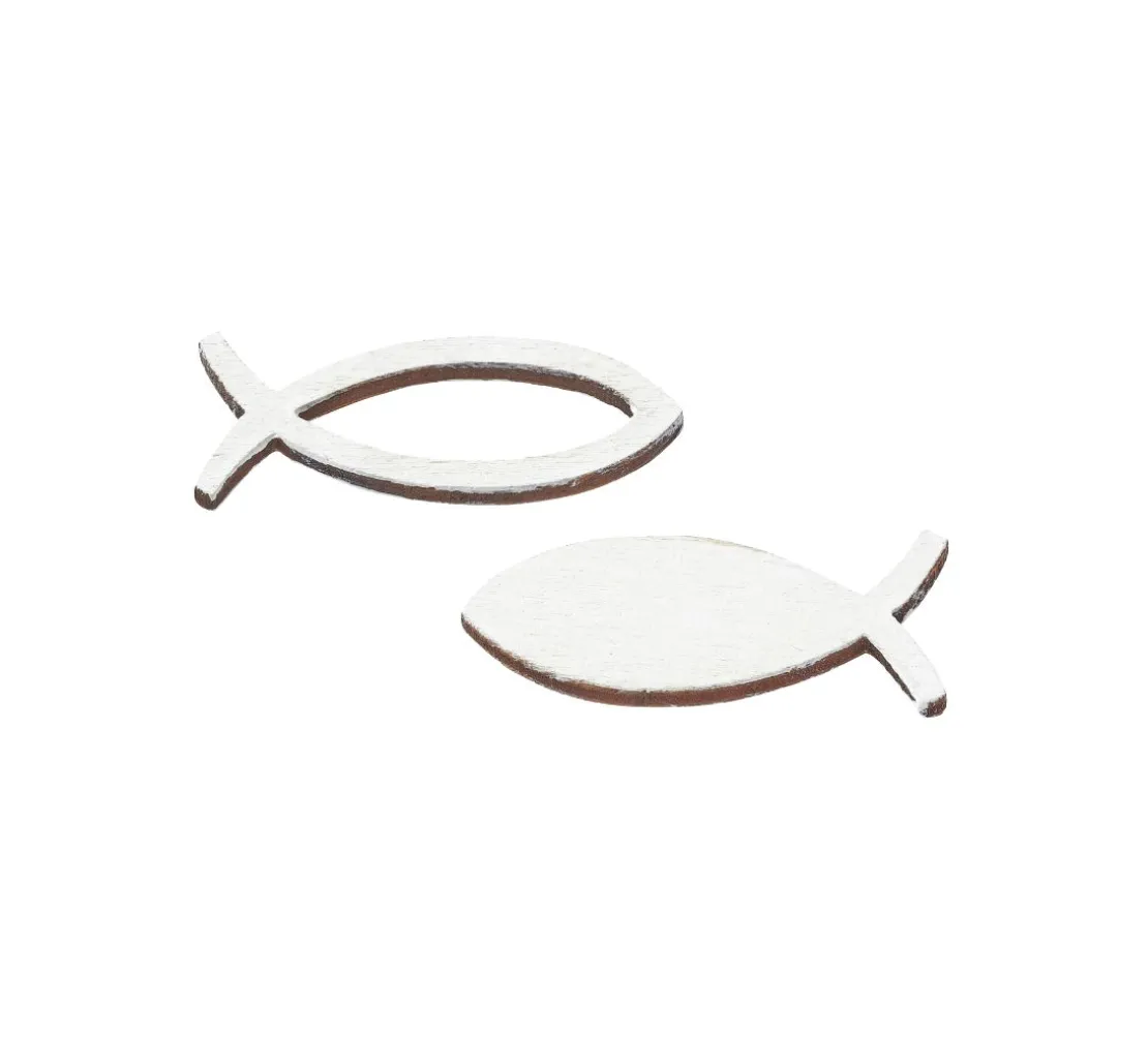 Naturbelassene Streuteile Fisch „Finley“ aus Holz mit einer Größe von ca. 3,5 x 1,5 cm. Die Stärke beträgt ca. 2 mm. Sie erhalten 16 Fische in zwei verschiedenen Ausführungen mit je 8 Stück.