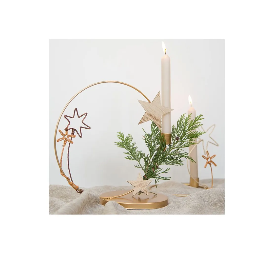 Die naturfarbenen Sterne sind gelasert und können wunderbar auf metallischen Oberflächen verziert werden. So wird beispielsweise aus einem dekorierten Metallring besonders schnell eine winterliche Dekoration. Auch für Metalllaternen und Magnettafeln. Für farbliche Akzente können die Sterne mit Bastelfarbe und Glitter schick bemalt werden. Selbstverständlich auch für die Gestaltung in Kränzen und auf Grußkarten ideal.