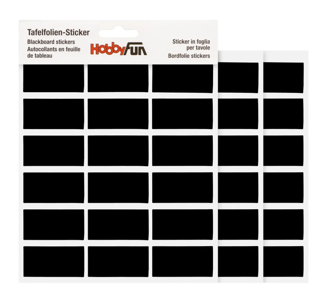 Tafelfolien-Sticker sind sehr vielfältig und können für die verschiedensten Kreativarbeiten verwendet werden. Ob zum Gestalten von Grußkarten, Tischkarten, Scrapbook-Alben, Geschenkanhängern und vielem mehr. Beschriften Sie die Sticker und verzieren anschließend Vorratsdosen, Einmachgläser oder Flaschen. So sieht man auf den ersten Blick was sich in dem Gefäß befindet. Beschriften Sie die Sticker mit einer lieben Botschaft und verzieren damit Schachteln oder Kraftpapiertüten, die mit Deko-Band ergänzt zu einer liebevollen Geschenkverpackung werden.