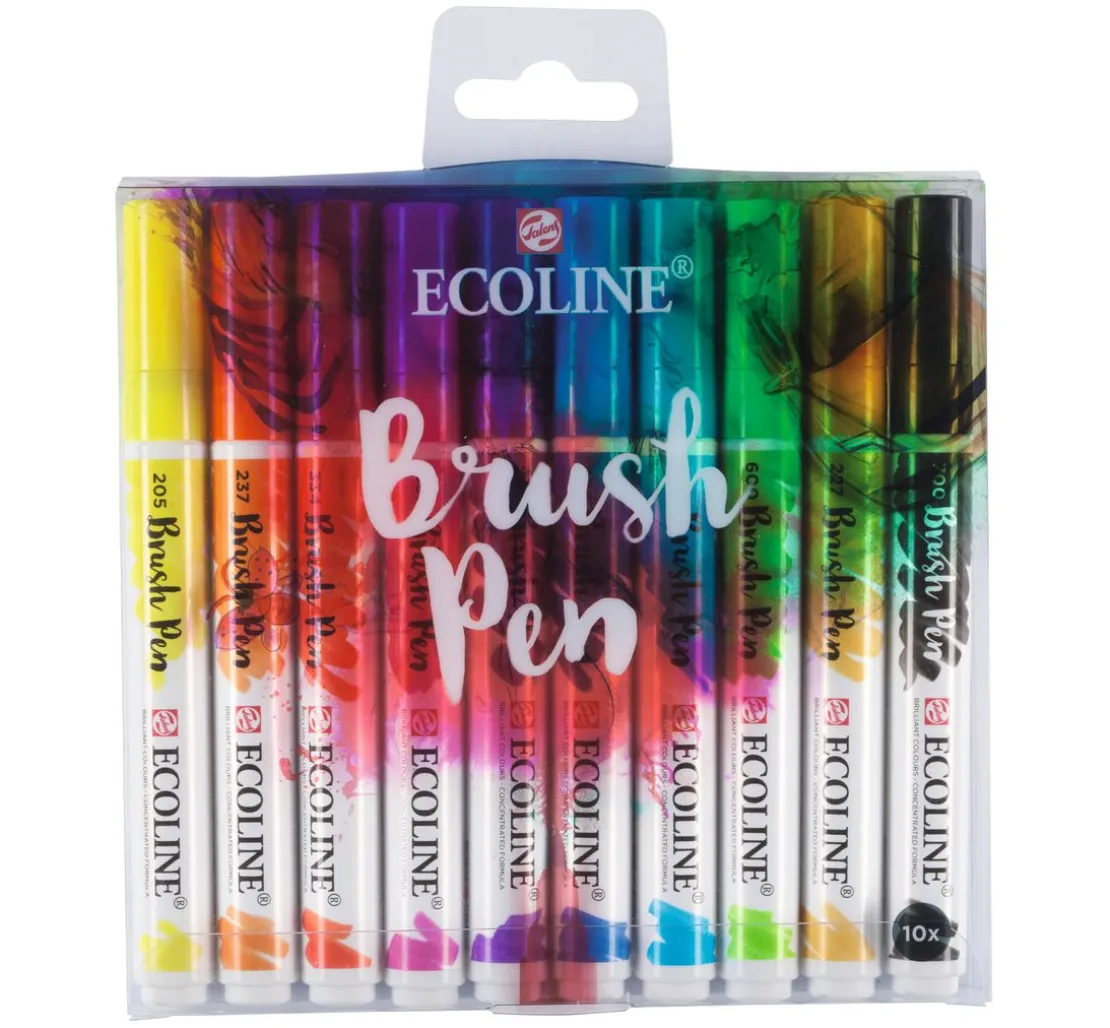 Talens Ecoline Brush Pen Set mit 10 brillianten Farben.