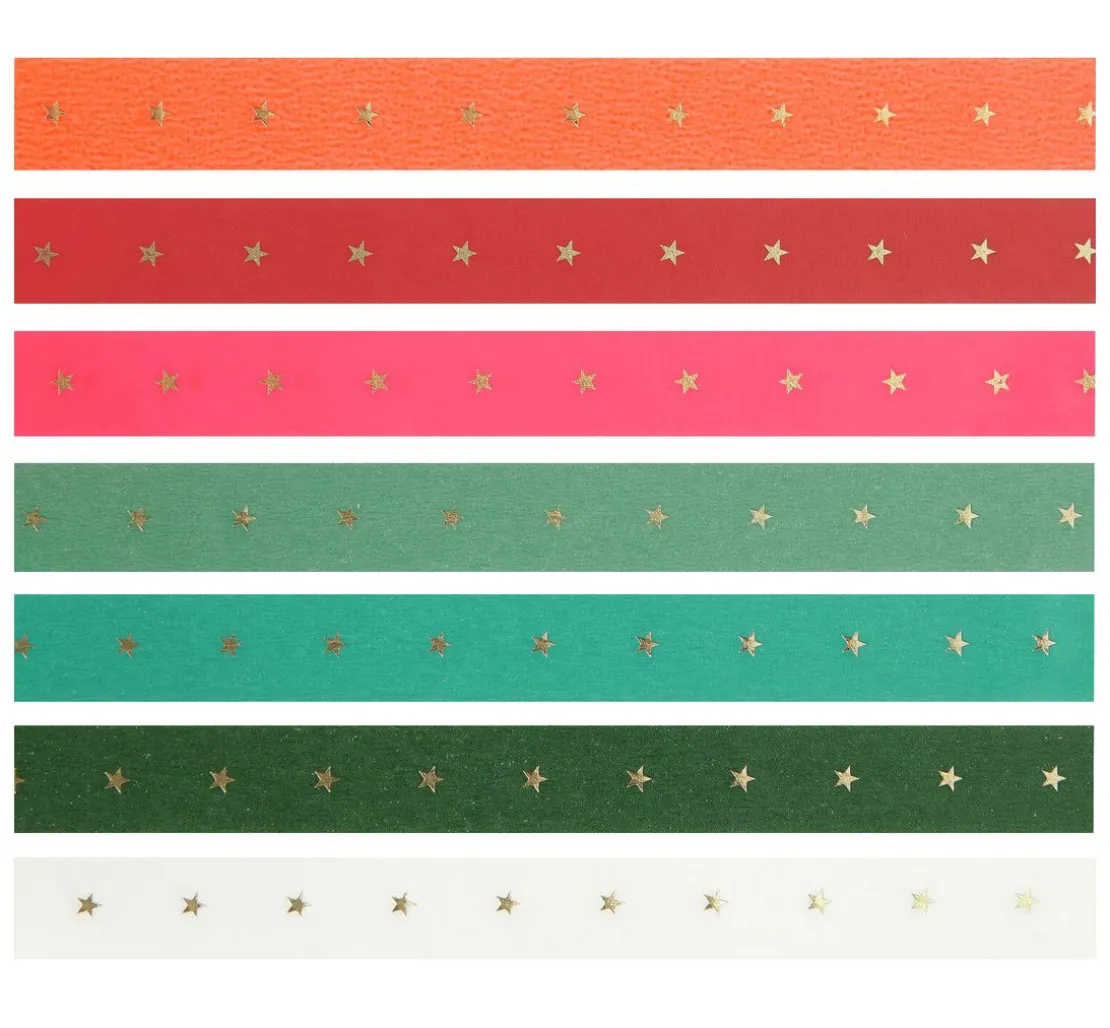 Entfessle deine Kreativität mit diesem Tape-Set „Sterne“! Diese selbstklebenden Bänder in strahlenden Neonfarben sind mit goldenen Sternen in einer edlen Hotfoil-Veredelung versehen und lassen deine kreativen Projekte im wahrsten Sinne des Wortes erstrahlen.
