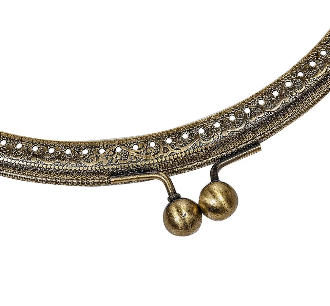 Der Taschenverschluss ca. 20,5 x 12,5 cm ist aus solidem Metall (altmessing). Der Clipverschluss hält die Tasche gut verschlossen. Die Bügel sind mit Löchern perforiert, mithilfe derer der Taschenverschluss bequem an die Stofftasche genäht werden kann.