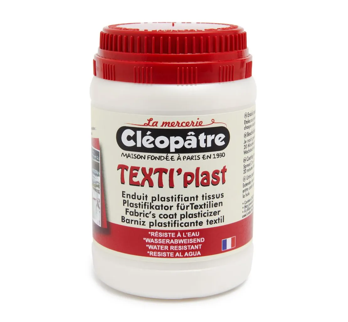 Je nach gewünschtem Ergebnis sollten Sie Texiplast mit einem Pinsel in 2 oder 3 Schichten auftragen. Zum Auftragen eignet sich ein weicher Synthetikpinsel wie z. B. unser breiter Serviettenpinsel. Zwischen 2 Schichten sollten Sie ca. 20 Minuten abwarten und die Endgültige Trocknungszeit beträgt 24 Stunden. Ihr Werkzeug können Sie mit Seifenwasser reinigen. Nach dem Trocknen kann der behandelte Stoff mit einem Schwamm abgewischt werden.