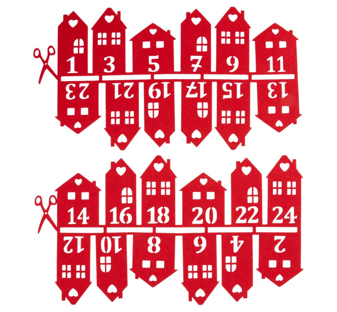 Die Adventszahlen haben eine Breite von 4 cm und eine Höhe von 8,5 cm und bestehen aus Filz. Sie sind perfekt für die Adventszeit geeignet und verleihen deinem Adventskalender eine besondere Note. Die rote Farbe passt perfekt zum Advent und sorgt für eine festliche Atmosphäre.