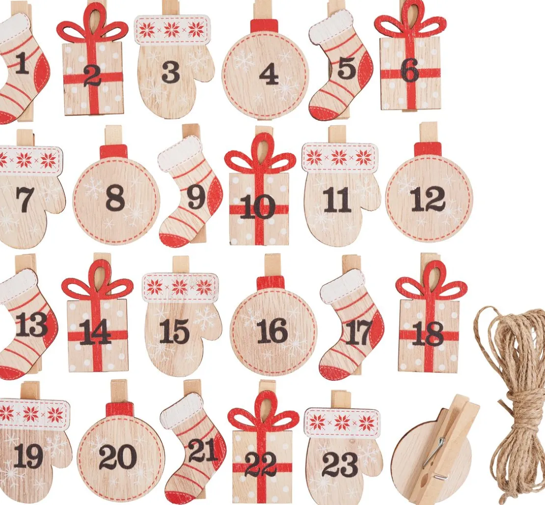 Unsere bezaubernden VBS Adventszahlen „Geschenk“ aus bemaltem Sperrholz sind ein wahres Fest für die Sinne und ein Muss für jeden DIY-Liebhaber. Mit liebevoll gestalteten Motiven wie Strumpf, Geschenk, Handschuh und Christbaumkugel in festlichem Rot-Weiß sind sie ein echter Hingucker für jeden Adventskalender. Jedes Stück ist mit einer praktischen Holzklammer versehen, die das Anbringen zum Kinderspiel macht.