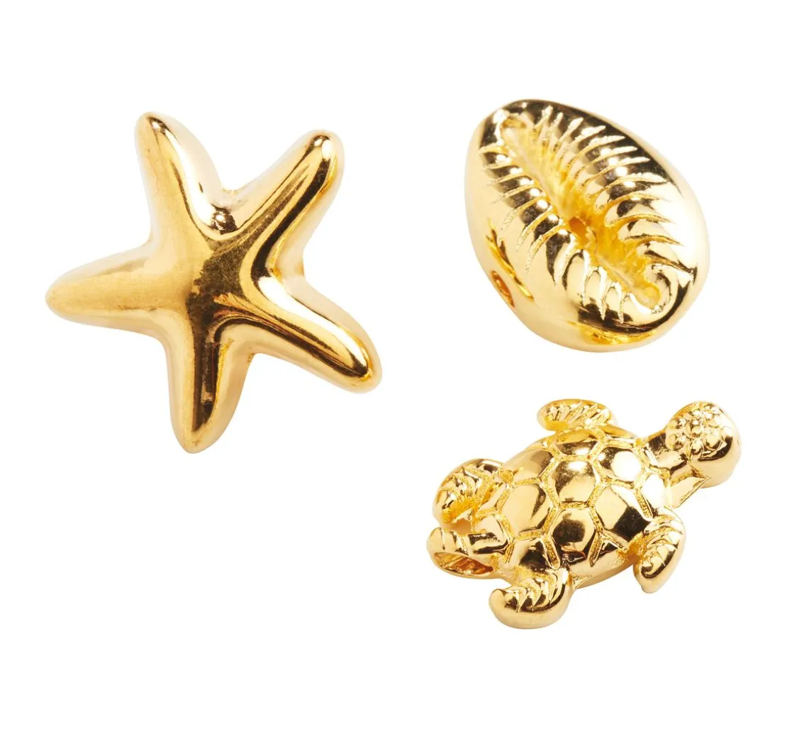Tauche ein in die Welt des Meeres mit den VBS Anhängern „Beach“. Die drei Anhänger in Form einer Schildkröte, Muschel und Seestern sind aus hochwertigem Metall gefertigt und mit einer speziellen 999er silberfarbigen bzw. 24K goldfarbigen Legierung veredelt. Sie eignen sich perfekt für die Gestaltung von individuellem Schmuck und sind ein echter Hingucker. Größe der Anhänger: Schildkröte 11 x 8 mm (Loch-Ø 1,2 mm), Muschel 12 x 8 mm (Loch-Ø 1,5 mm), Seestern 13 mm (Loch-Ø 5 x 2 mm).