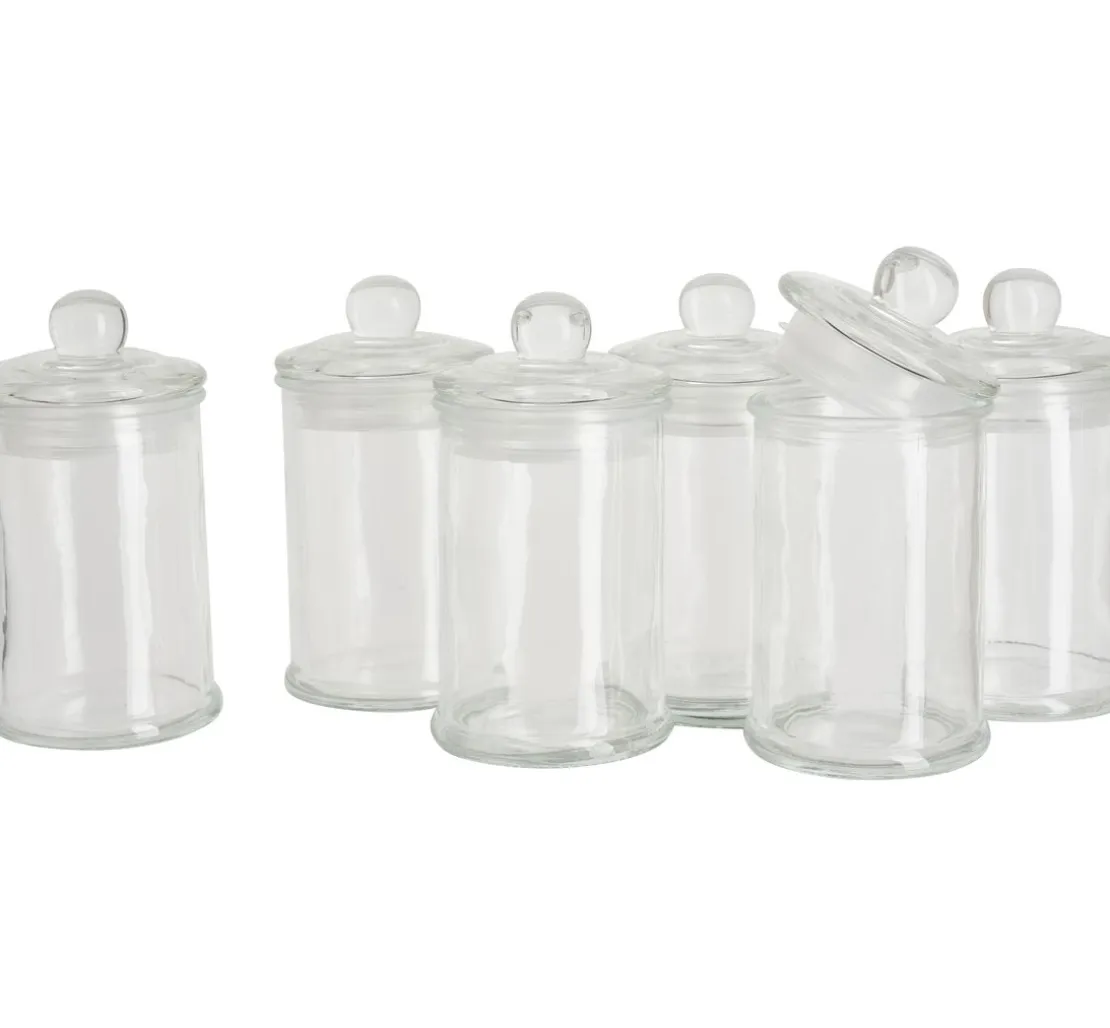 VBS Aufbewahrungsgläser als XXL Packung mit 6 Gläsern aus Klarglas. Die Gläser haben ein Durchmesser von ca. 6 cm und sind ca. 11 cm hoch. Der Innen-Ø beträgt ca. 4,8 cm. Die Aufbewahrungsgläser können mit ca. 120 ml befüllt werden. Der Deckel aus Glas ist mit einer Kunststoffdichtung versehen. Ein sicherer Verschluss für kleine Köstlichkeiten oder Geschenkideen.