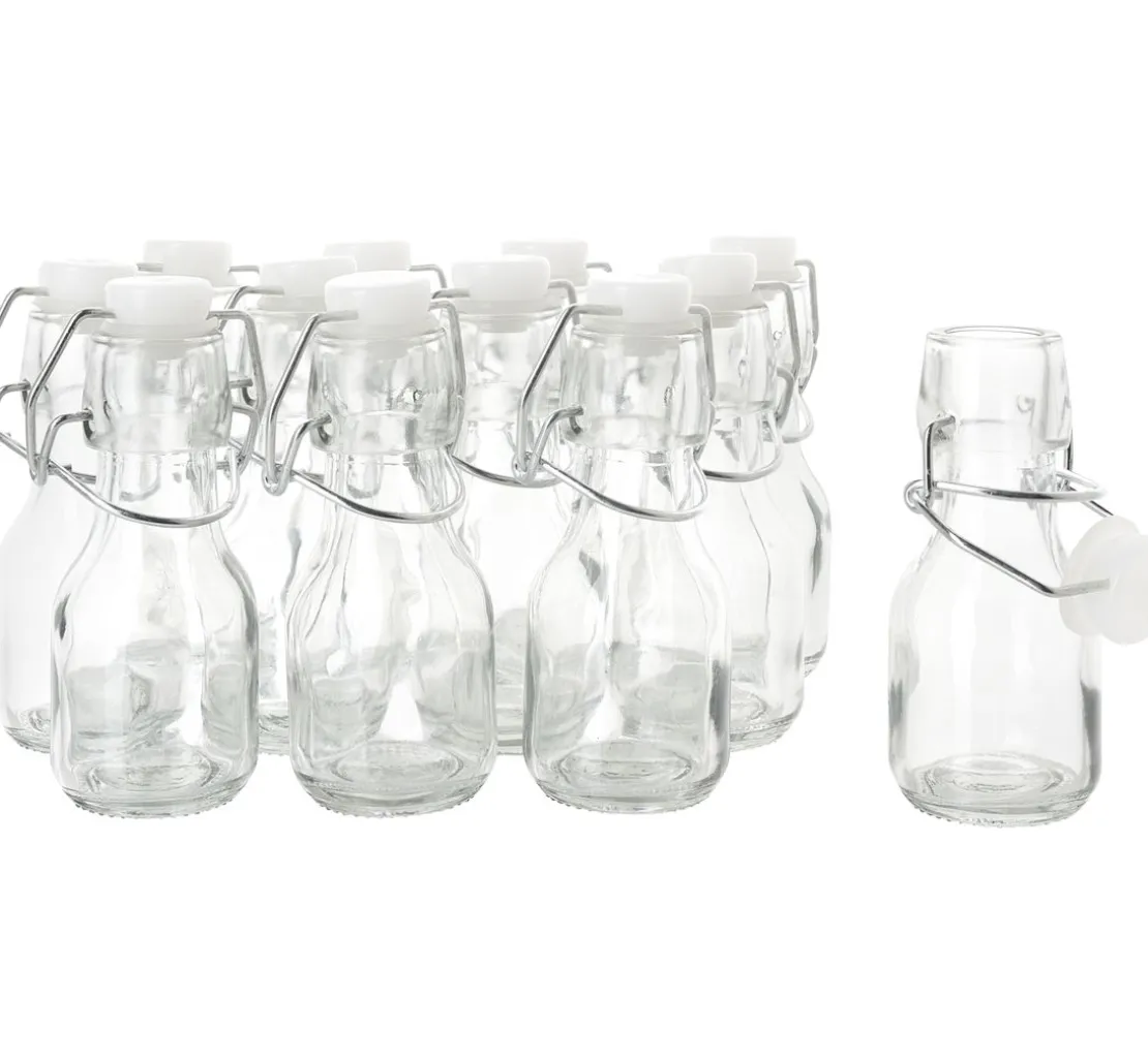 Sie suchen eine größere Menge an kleinen Fläschchen zum Befüllen? Diese VBS XXL Packung enthält 12 Flaschen aus Glas mit einem praktischen Bügelverschluss. Die Flaschen messen einen Ø von ca. 4,2 cm und eine Höhe von ca. 11,3 cm. Die Füllmenge pro Flasche beträgt ca. 50 ml.