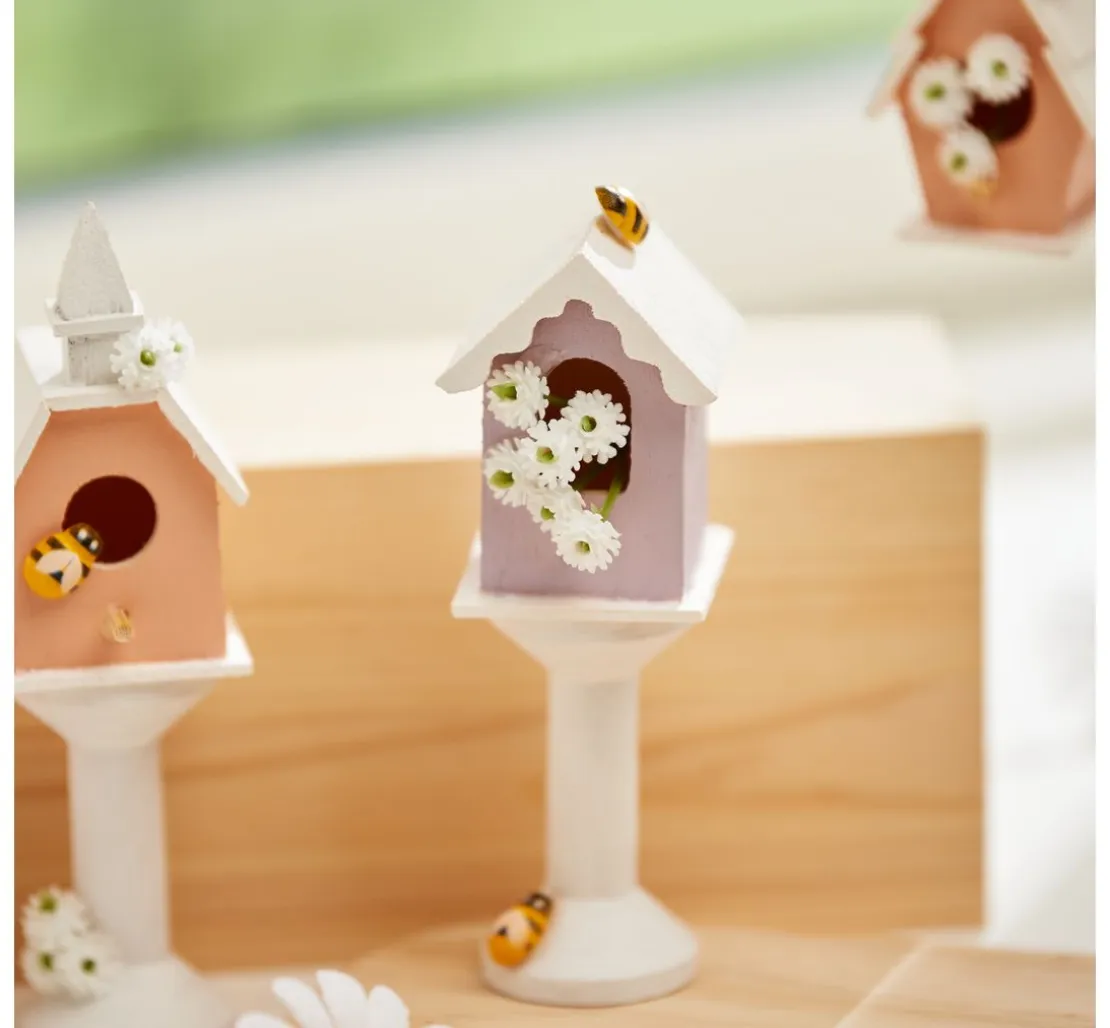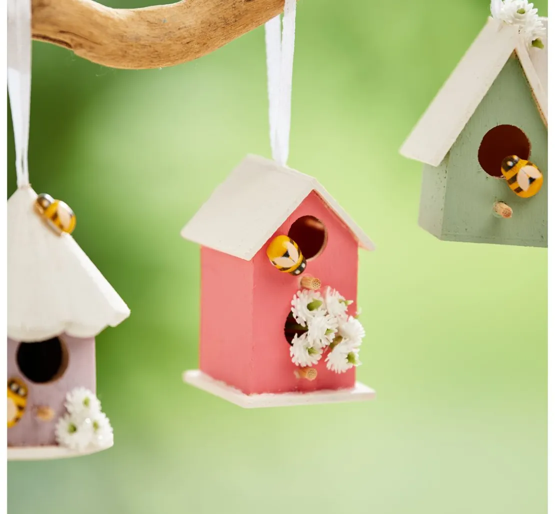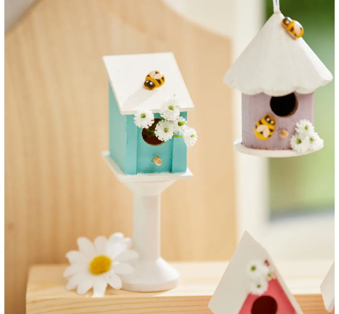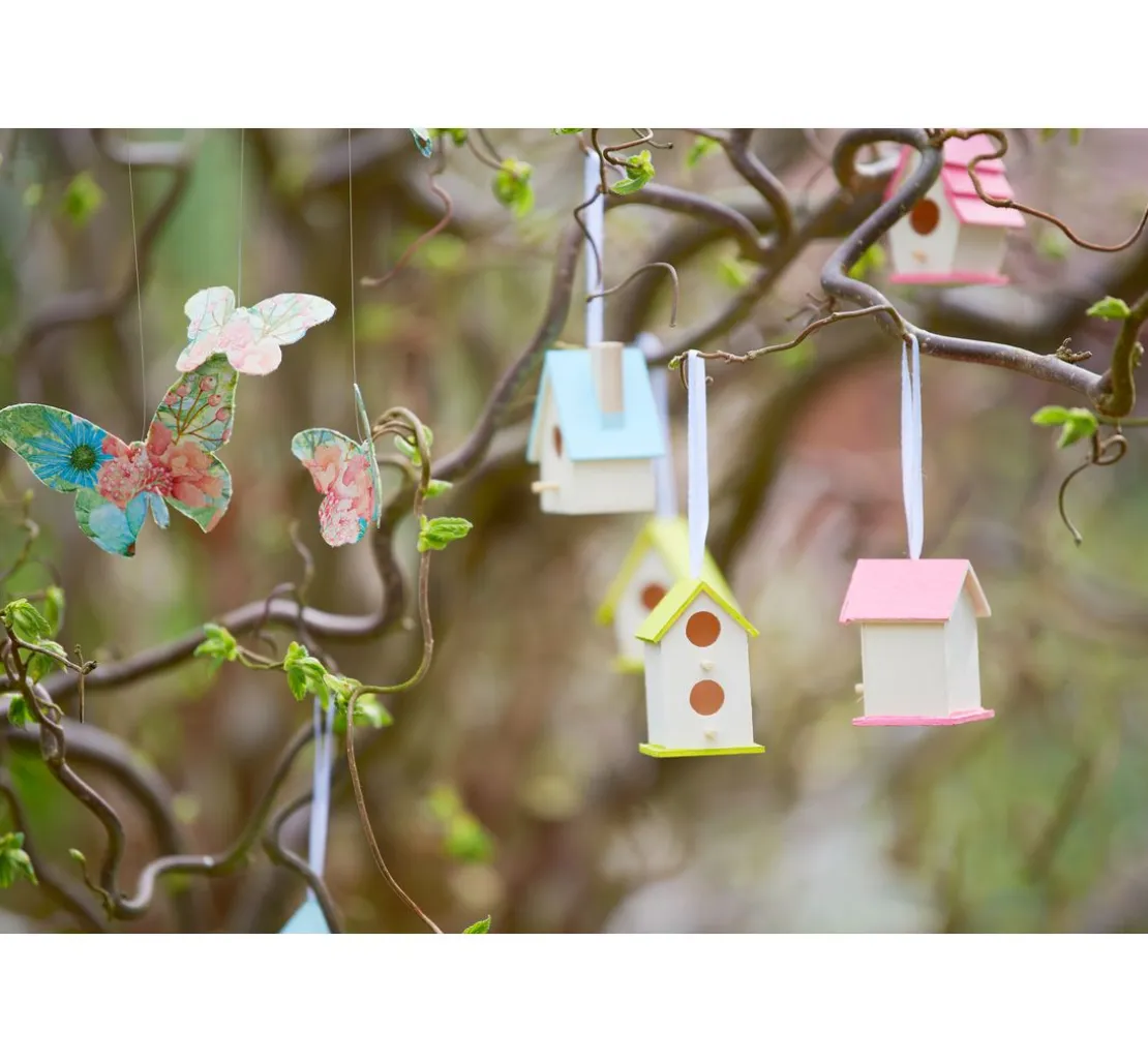 Tolles Set bestehend aus 8 verschiedenen Vogelhäusern. Die Vogelhäuser bestehen aus Rohholz. Niedliche Vogelhäuschen für viele kreative Ideen. Die Vogelhäuser eignen sich zum Stellen und Aufhängen. Inkl. Aufhängeband aus weißem Satin.