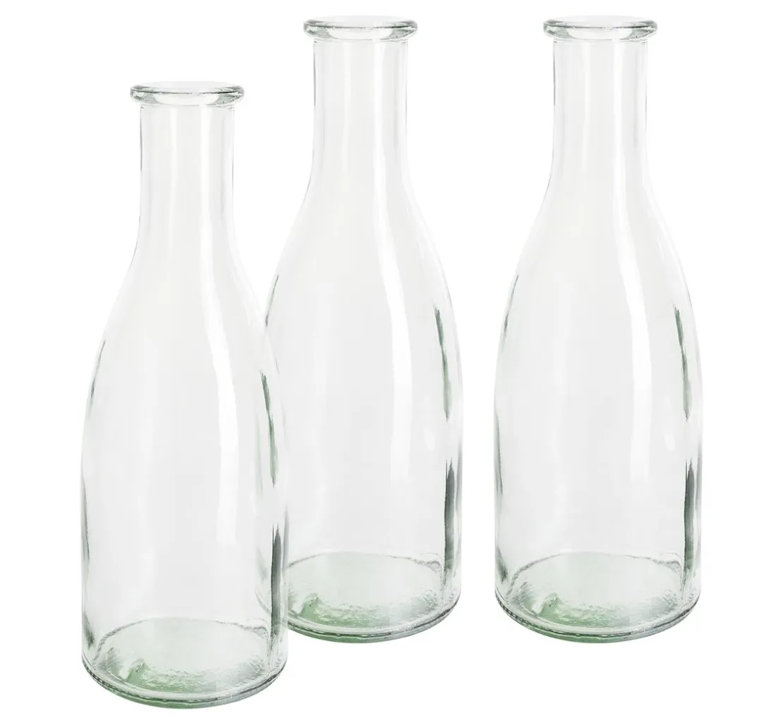 Verschönere deine Wohnung mit den vielseitig einsetzbaren VBS Flaschenvasen im 3er-Set! Mit einer Höhe von 18 cm und einem Fassungsvermögen von ca. 300 ml sind die Flaschen aus gepresstem Glas perfekt geeignet, um deine Lieblingsblumen oder selbstgemachte Sträuße in Szene zu setzen.