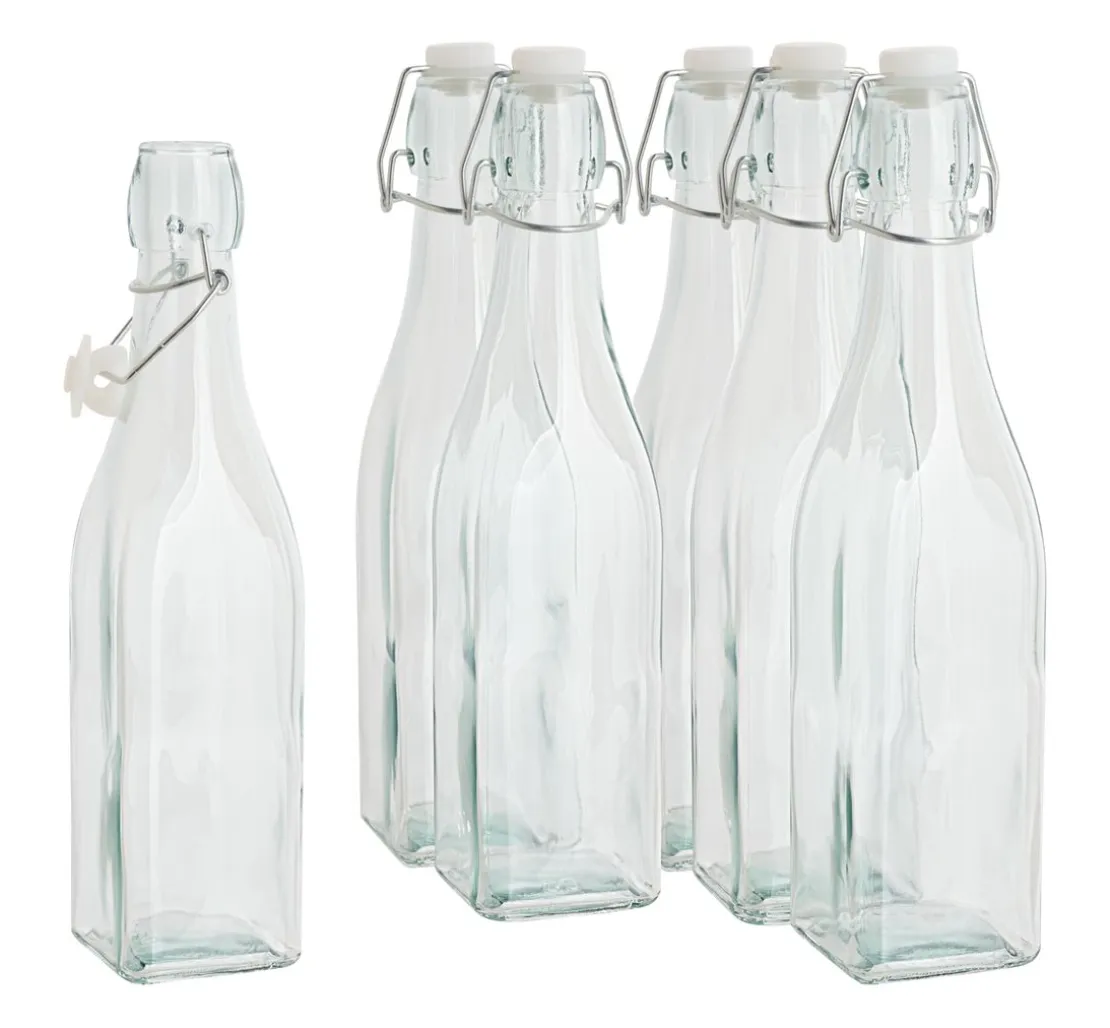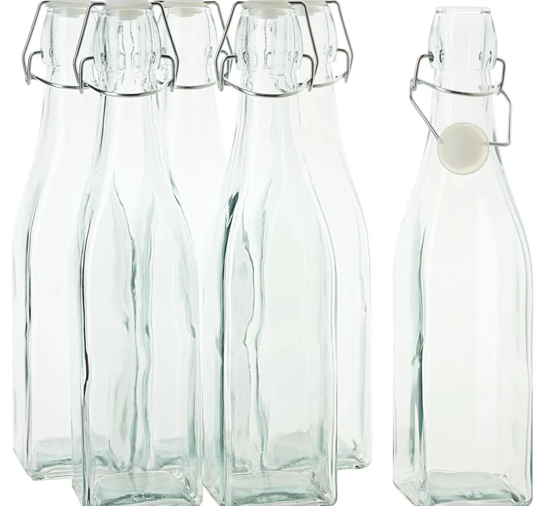 Kreative Köpfe aufgepasst! Mit den VBS Glasflaschen mit Bügelverschluss „Eckig“ kannst du deine selbstgemachten Köstlichkeiten aus der Küche liebevoll verpacken. Die 6 Flaschen mit einer Füllmenge von je 500 ml und einer Größe von 6 x 6 x 27 cm sind nicht nur praktisch, sondern auch ein echter Hingucker. Durch ihre eckige Form und den Bügelverschluss aus Metall sind sie nicht nur robust, sondern auch besonders stylisch.