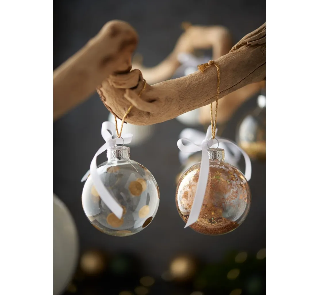 Die Kugeln eignen sich ausgezeichnet für Ihren Weihnachtsbaum. Befüllen Sie die Kugeln mit den verschiedensten Materialien wie z. B. Streusternen,