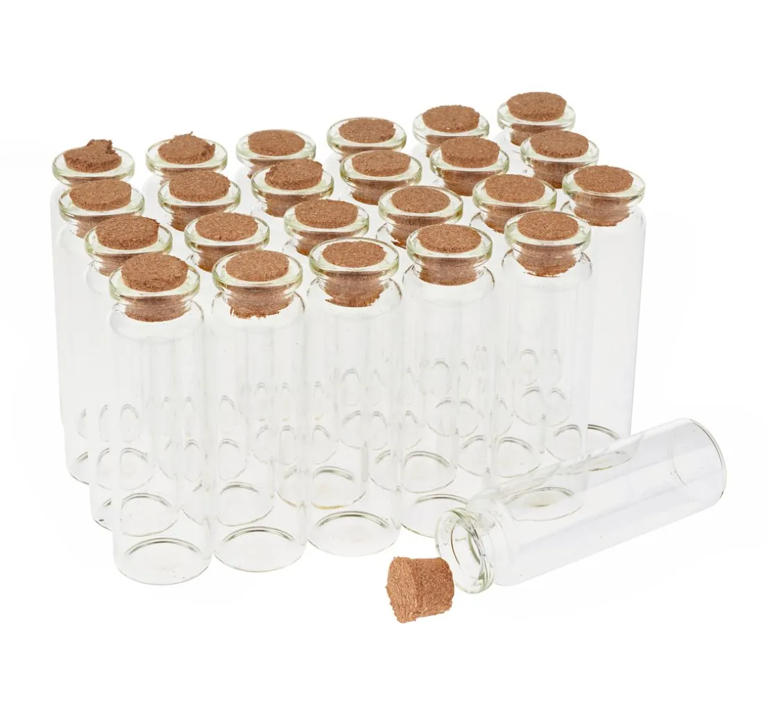 VBS XXL Glasröhrchen mit Korken „7 cm“ als Vorteilspack mit 24 Stück. Die Röhrchen sind aus klarem Glas, ca. 7 cm hoch mit einem Ø von ca. 2 cm. Der Innen-Ø der Öffnung beträgt ca. 1,2 cm. Toll zum Befüllen und Dekorieren.