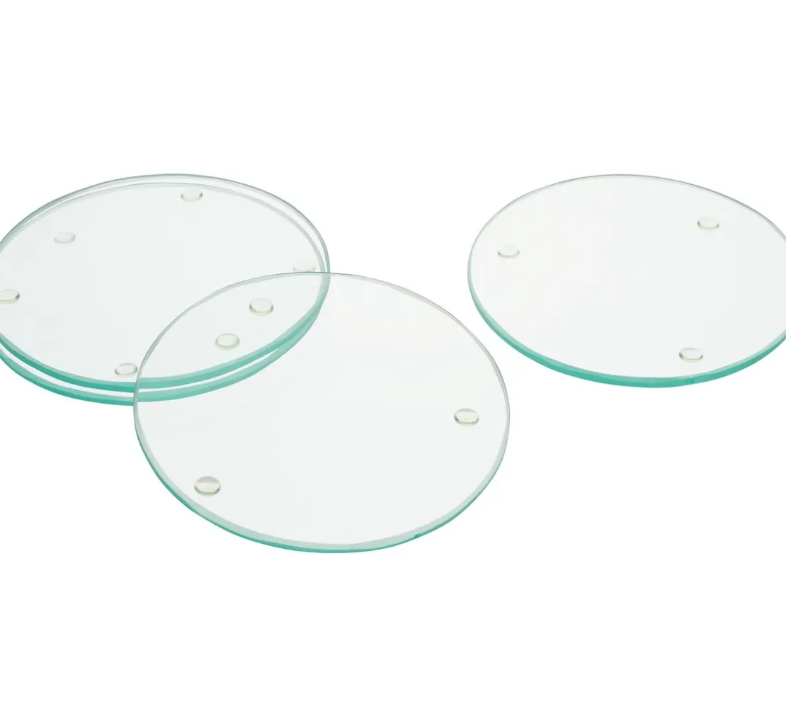 Die 4 Glasuntersetzer sind aus hochwertigem Glas gefertigt und somit langlebig und pflegeleicht. Auch optisch überzeugen sie mit ihrem klaren und schlichten Design. Sie sind das ganze Jahr über einsetzbar und verleihen deiner Tischdekoration das gewisse Etwas. Durch die Größe von 9 cm passen sie perfekt unter Tassen, Gläser oder Flaschen.