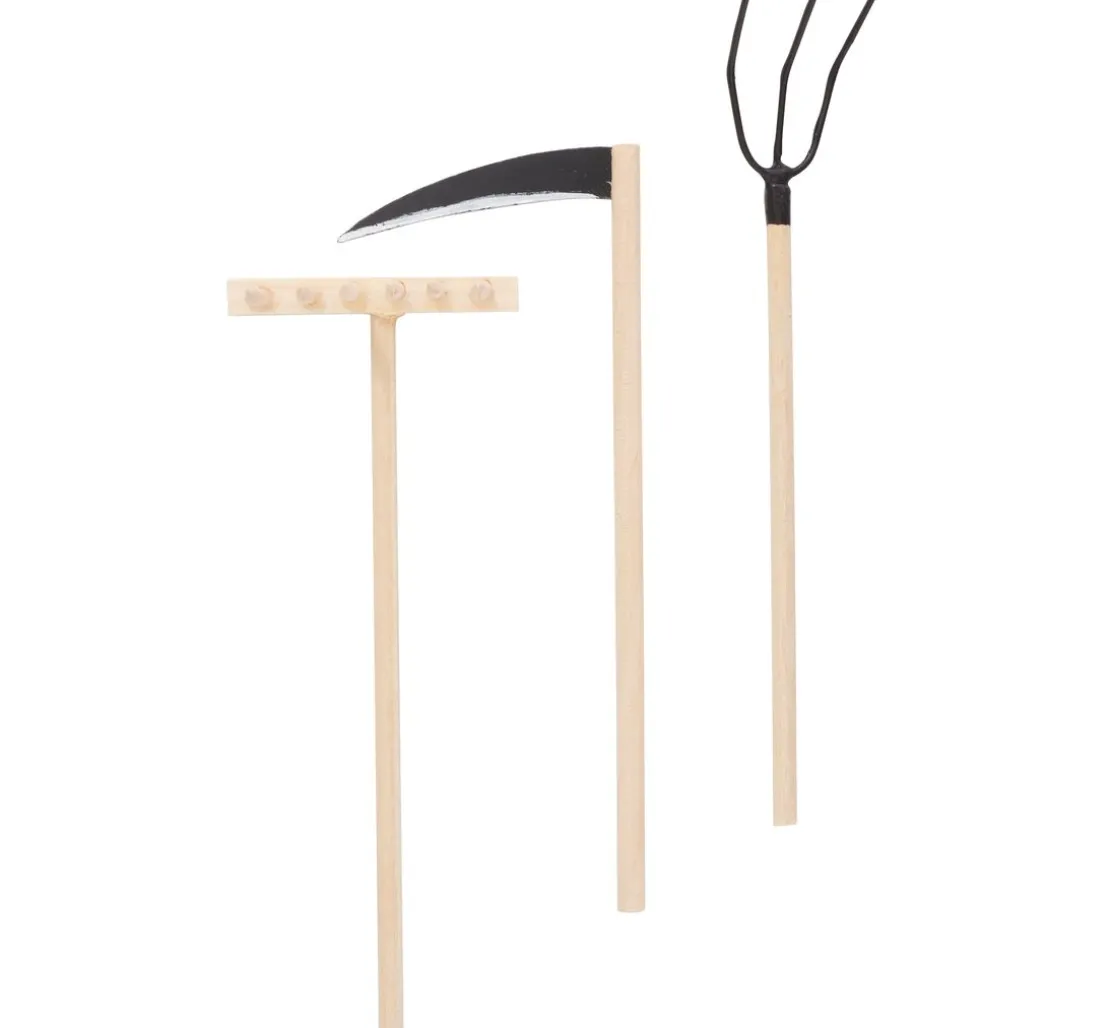 Das Set beinhaltet eine Mini-Heugabel, eine Mini-Sense und einen Mini-Rechen. Lass deiner Kreativität freien Lauf und gestalte damit beispielsweise Miniatur-Landschaften oder Tischdekos. Die Holz-Gartengeräte sind vielseitig einsetzbar und lassen sich durch ihre naturbelassene Optik perfekt in deine DIY-Projekte integrieren.