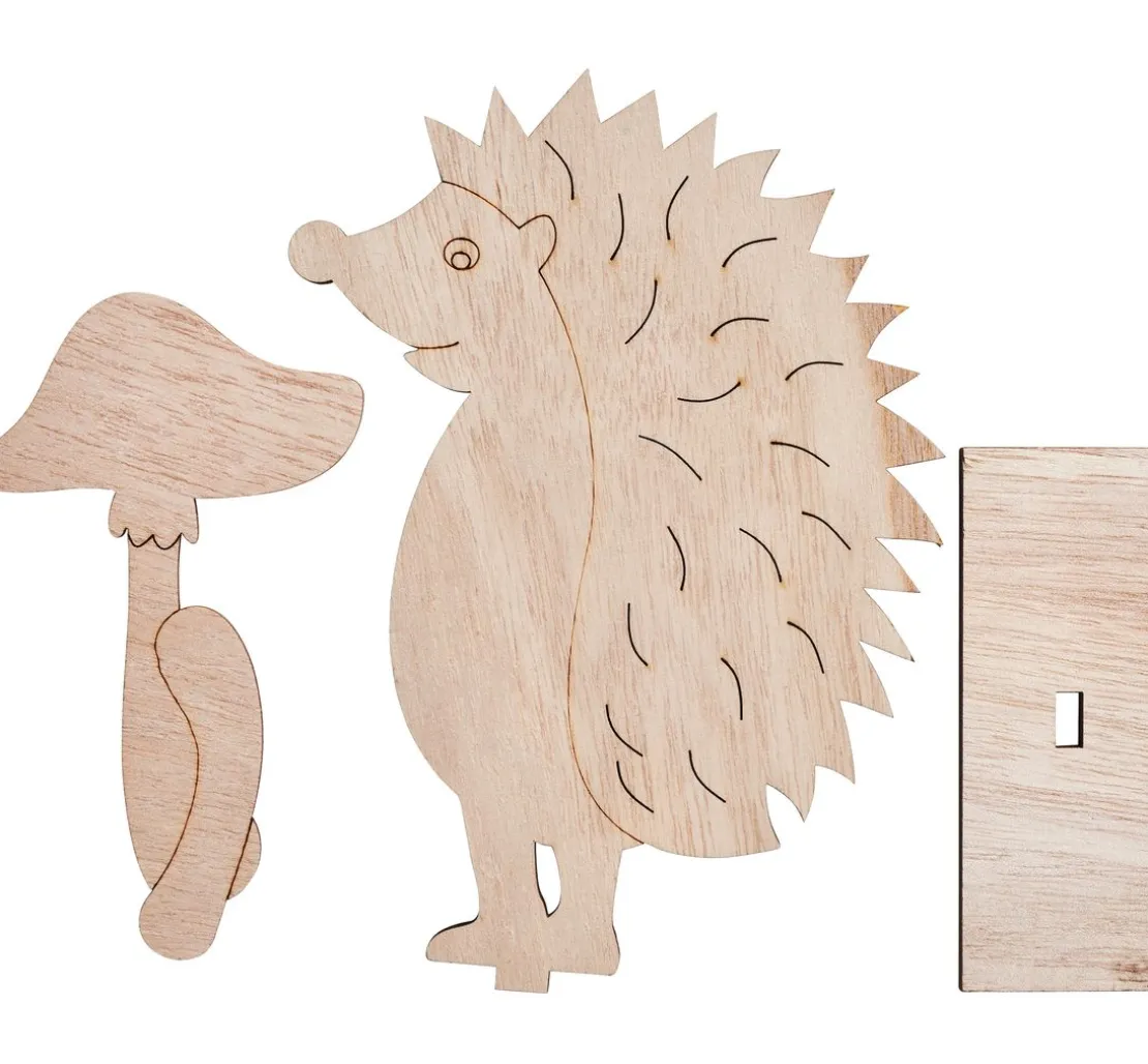 Dieses tolle VBS Holz-Steckmotiv „Igel“ besteht aus 3 Teilen. Das Material ist hochwertiges, furniertes Sperrholz. Der Igel ist einseitig dekoriert, teilweise bemalt (Nase und Auge), zum Stecken und der Arm mit dem Fliegenpilz wird von Ihnen angeklebt (Bastelkleber nicht enthalten). Dieses Motiv hat eine Größe von ca. 11,5 x 4 x 17 cm, mit einer Stärke von ca. 5 mm.
