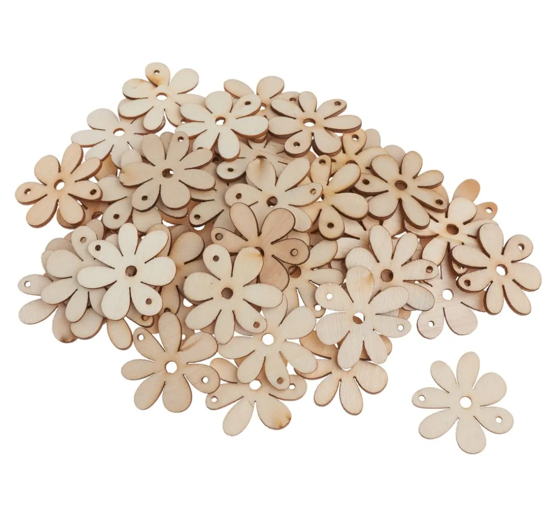 Dieses tolle XXL Packung enthält 45 Holz-Streuteile „Blüte natur“. Die Blüten sind aus Sperrholz und haben einen Durchmesser von ca. 3 cm.