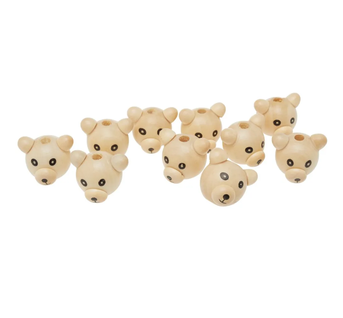 Diese Holzköpfe kommen in einer praktischen Packung mit 10 Stück und haben einen Ø von 25 mm. Mit dem 5 mm Loch in der Mitte kannst du sie leicht auffädeln und weiterverarbeiten. Ob für niedliche kleine Bären-Figuren mit Chenilledraht oder trendige Schlüsselanhänger.