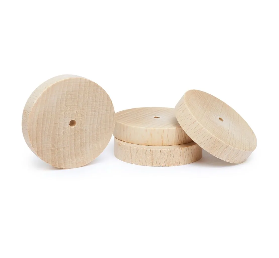 Unsere Holzscheiben aus strapazierfähigem Buchenholz sind geschliffen und durchgebohrt und bieten eine Bohrung von 5 mm. Sie lassen sich leicht in jedes kreative Projekt integrieren, sei es für originelle Bastelarbeiten, Modellbauprojekte oder als funktionale Räder für selbstgemachte Spielzeuge.