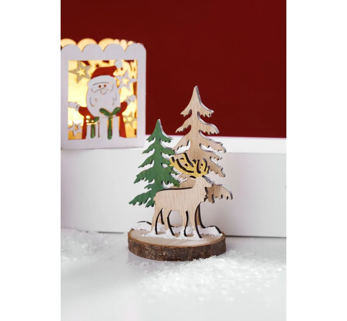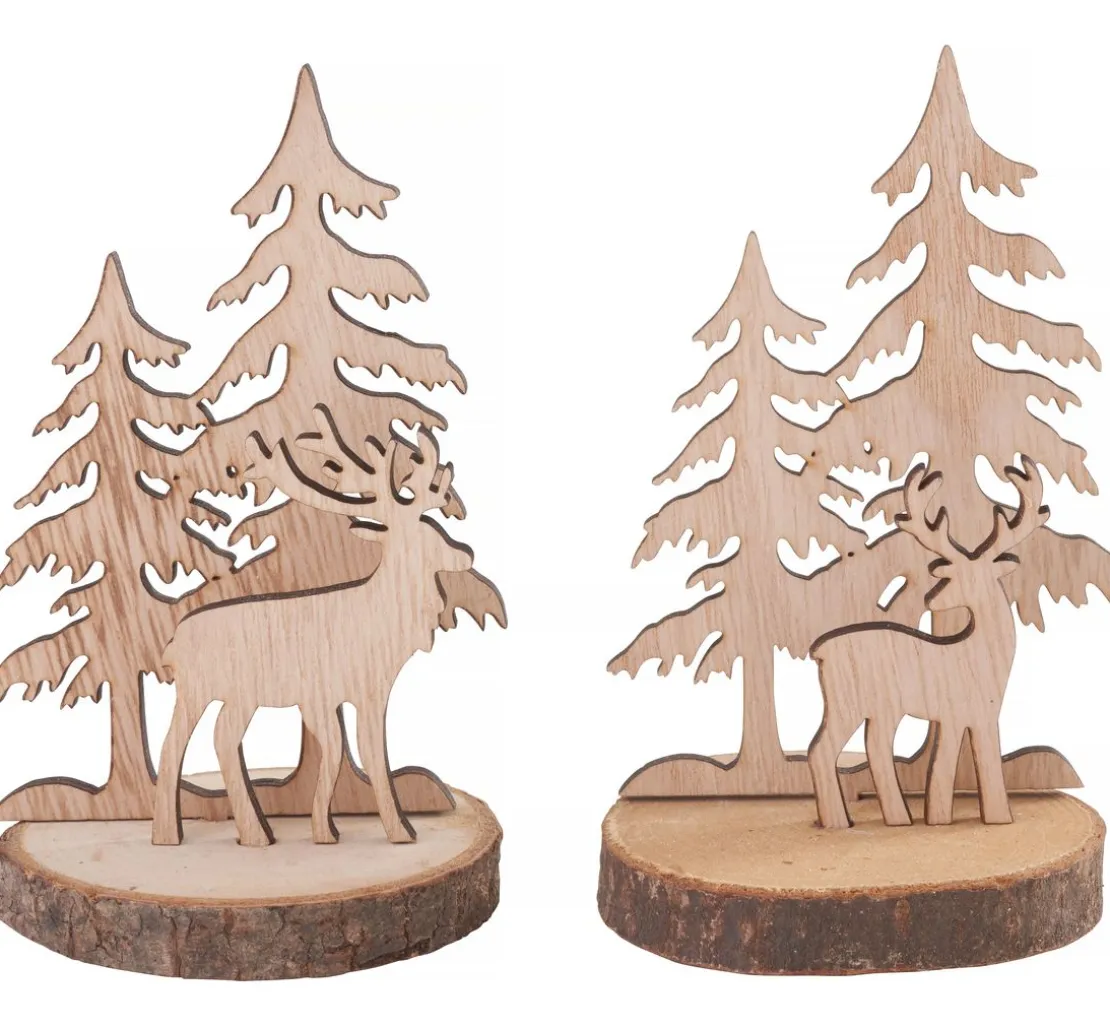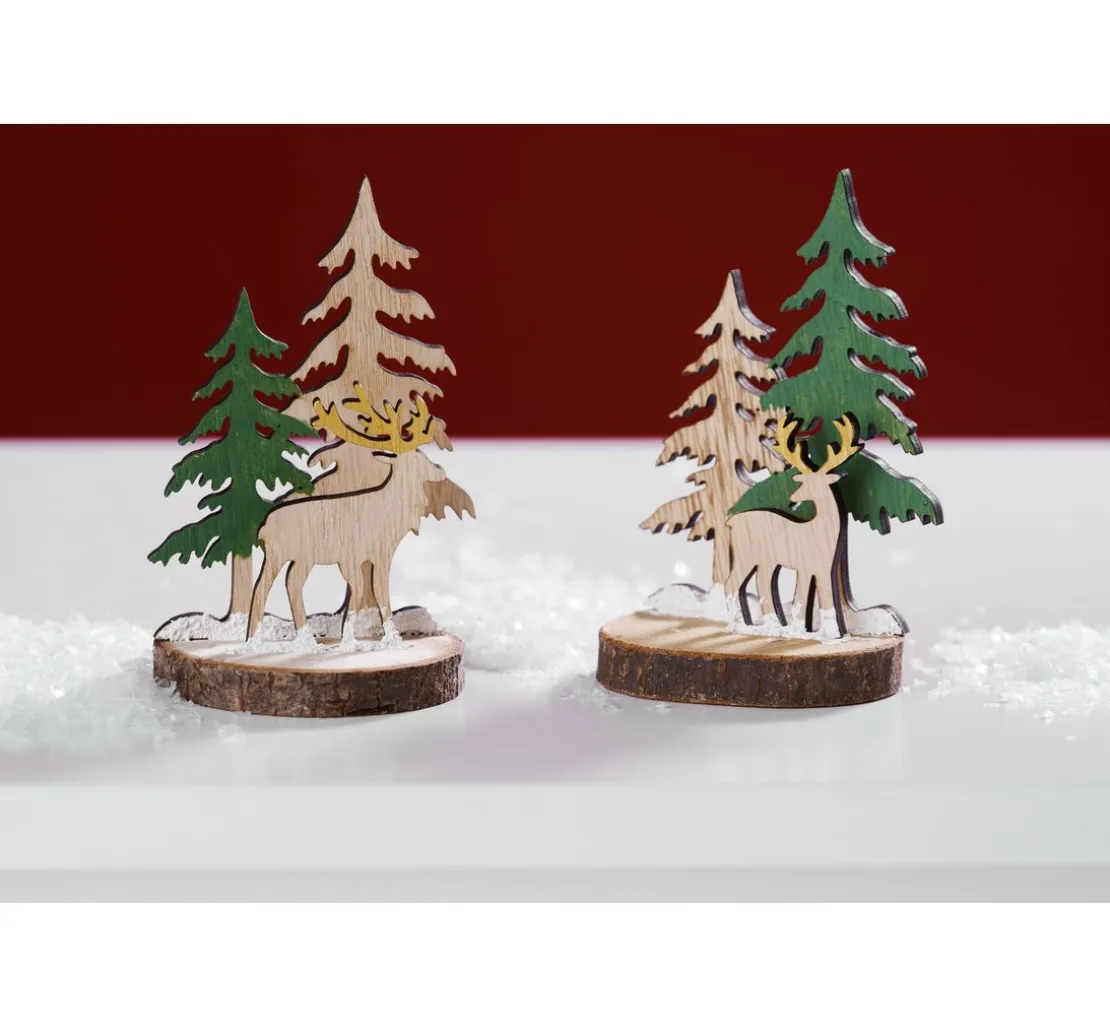 VBS Holz-Steckmotiv auf Rindenscheibe als 2er-Set, bestehend aus jeweils 3 Teilen, die zusammengesteckt ein tolles Motiv für Winter und Weihnachten ergeben. Die Rindenscheibe hat einen Ø von ca. 7 cm und eine Höhe von ca. 1,2 cm (Abweichungen sind möglich). Insgesamt beträgt die Höhe ca. 13, 2 cm. Das Material der Steckmotive ist furniertes Sperrholz.