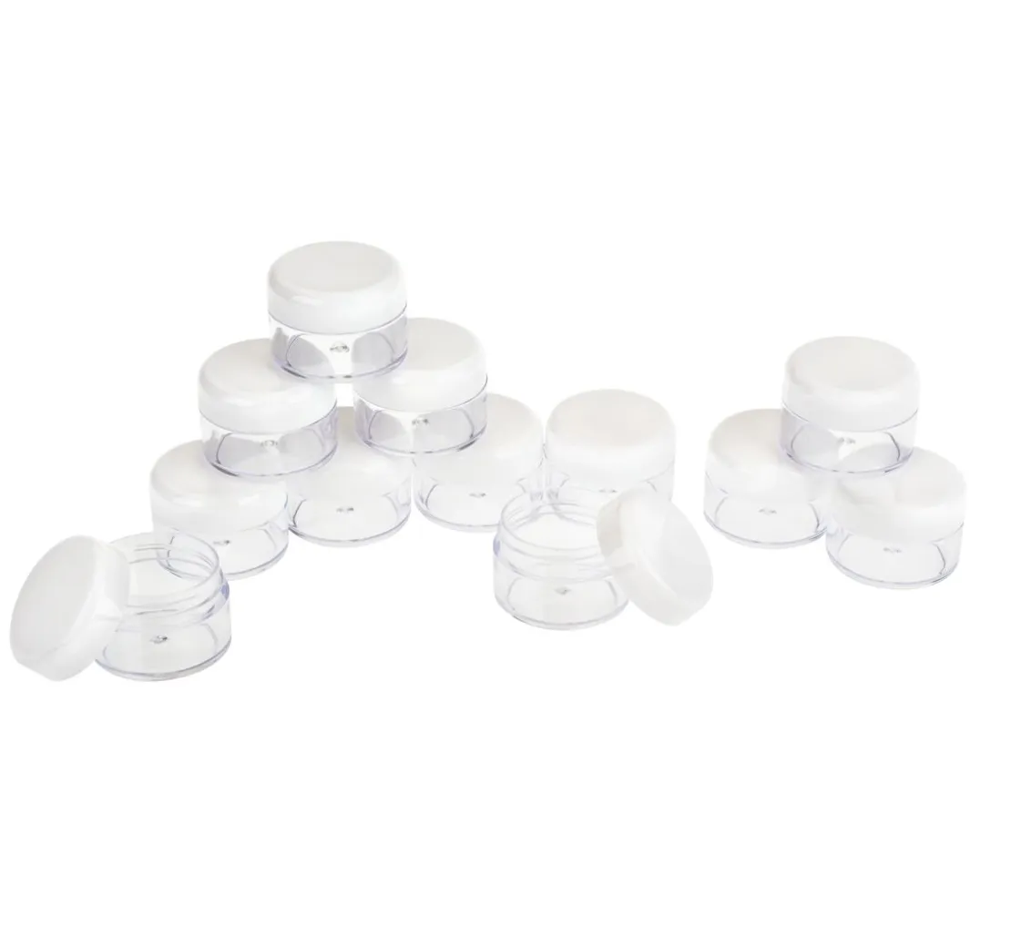 Der weiße Schraubdeckel verschließt fest, sodass selbst Flüssigkeiten, Pasten oder Gel darin aufbewahrt werden können. Dieses hochwertige Döschen bietet Kleinigkeiten wie Perlen, Cremes oder selbst gemischten Farben einen sicheren Aufbewahrungsort.