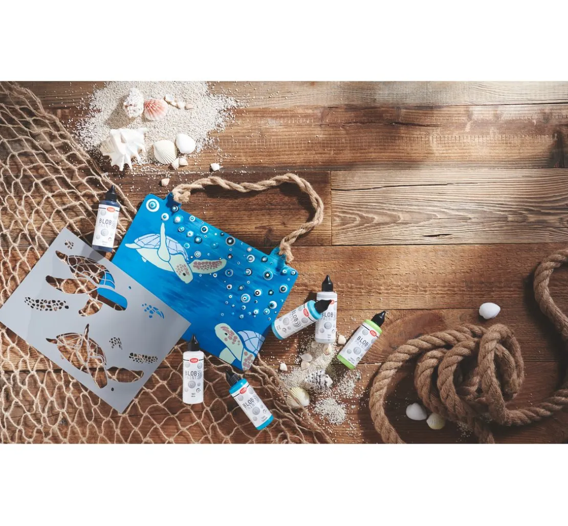 Für die Wischoptik oder für das dezente Auftupfen von Farbe ist ein Malschwamm immer sehr hilfreich. Man kann mit einem feuchten und mit einem trockenen Schwamm arbeiten. Vor dem Malen mit dem Schwamm empfiehlt es sich, auf einem Blatt Papier die Optik kurz zu testen.