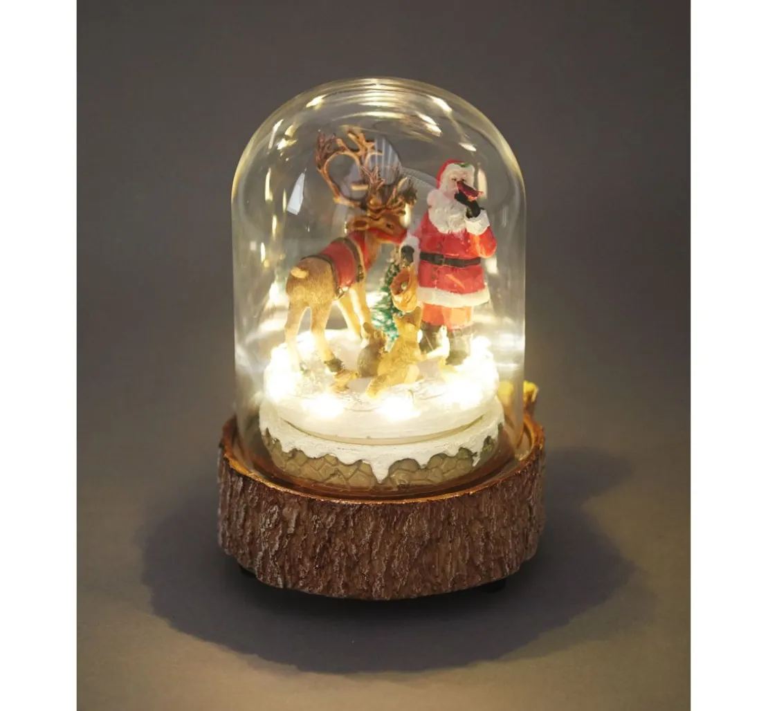 Diese wunderschöne VBS Miniatur Glasglocke „Weihnachten im Wald“ hat eine Höhe von ca. 17,5 cm und einen Ø von ca. 11 cm. Die Miniatur Glasglocke ist mit einer LED Lichterkette in warmweiß, einem Weihnachtsmann mit Rentier, Tannenbaum und Waldtieren dekoriert und spielt verschiedene Melodien.