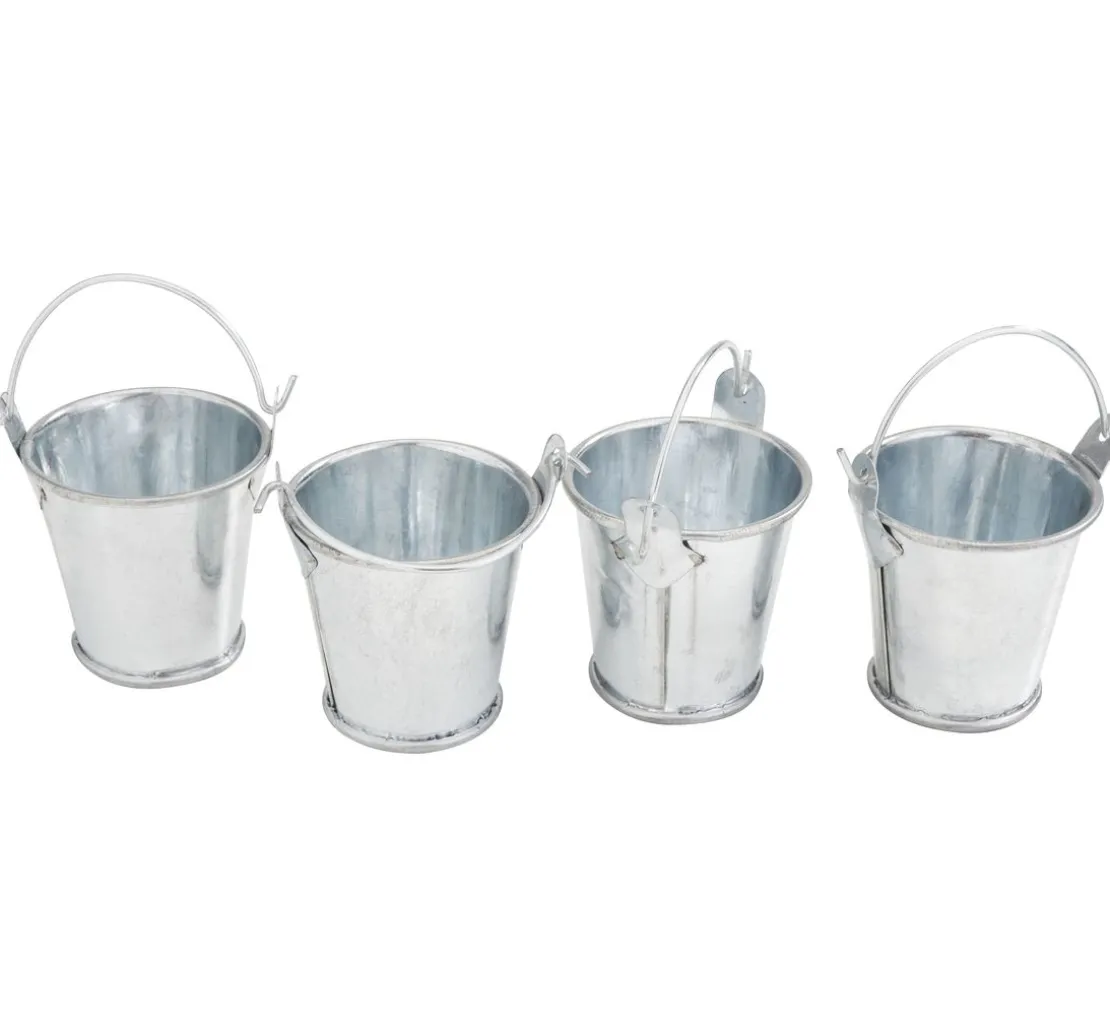 Die Miniatur Zinkeimer haben einen Ø von 3,5 cm oben und 2,5 cm unten sowie eine Höhe von 3,5 cm. Sie Metalleimerchen sind besonders robust und langlebig. In einer Packung sind insgesamt 4 Miniatureimer enthalten, sodass du ausreichend Material für verschiedene Szenen hast.