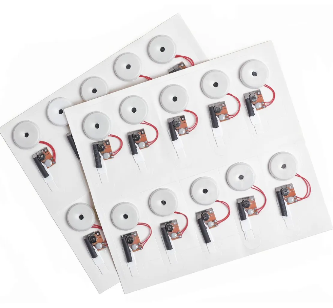 Jeder Musikchip, ca. Ø 2,5 cm, mit einer Stärke von 3 mm wird einfach von der Karte genommen, und auf die gestaltete Karte gesetzt. Mit dem Entfernen des Schutzstreifens ist der Musik Chip aktiv.
