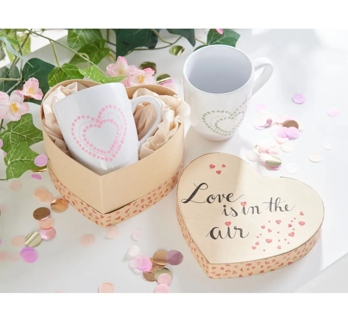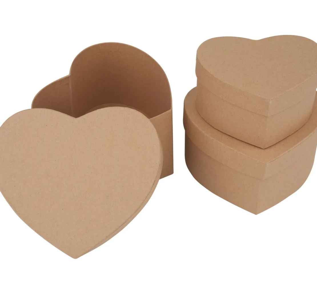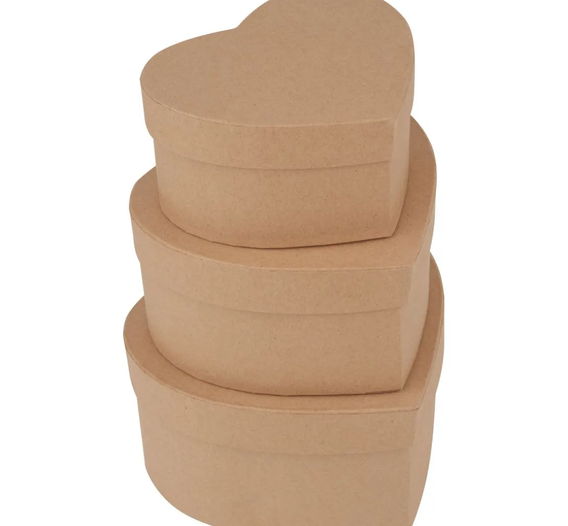 Ein tolles Set bestehend aus drei Schachteln – ideal als Geschenkboxen oder zum Aufbewahren von Kleinigkeiten wie Schmuck. Die drei VBS Herzschachteln sind aus naturfarbenen Karton und besitzen eine Größe von ca. H 9,5 x B 16,5 x T 15 cm, H 7,8 x B 15 x T 13,5 und H 6,3 x B 12,8 x T 11,4 cm.