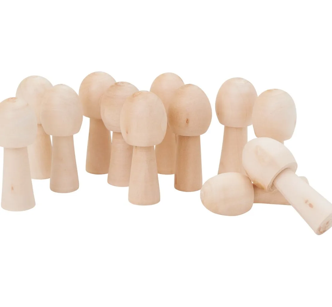 Die VBS Pilze „Oakley“ aus Holz sind ca. 4 cm hoch. Der Pilzkopf hat einen Ø von ca. 1,5 cm. Eine Packung enthält 12 Stück.
