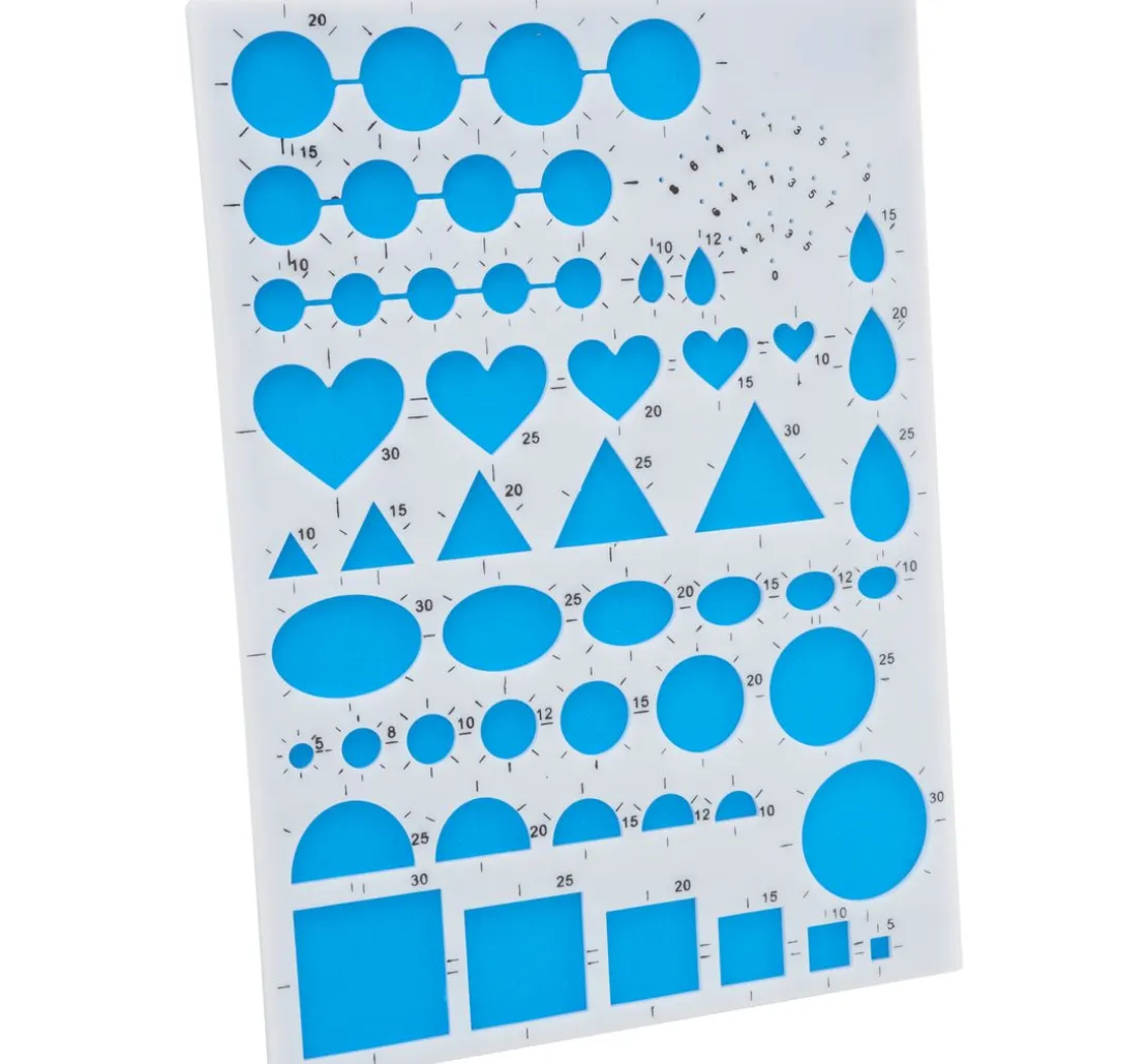 Die 7 Formen in unterschiedlichen Größen haben einen Motiv-Ø von ca. 0,1 – 3 cm. Gestalten Sie Kreise, Halbkreise, Tropfen und Quadrate, aber auch Herzen, Dreiecke und Ellipsen in den verschiedensten Größen, aus denen sich zarte Blumen, Tiere und Figuren basteln lassen.