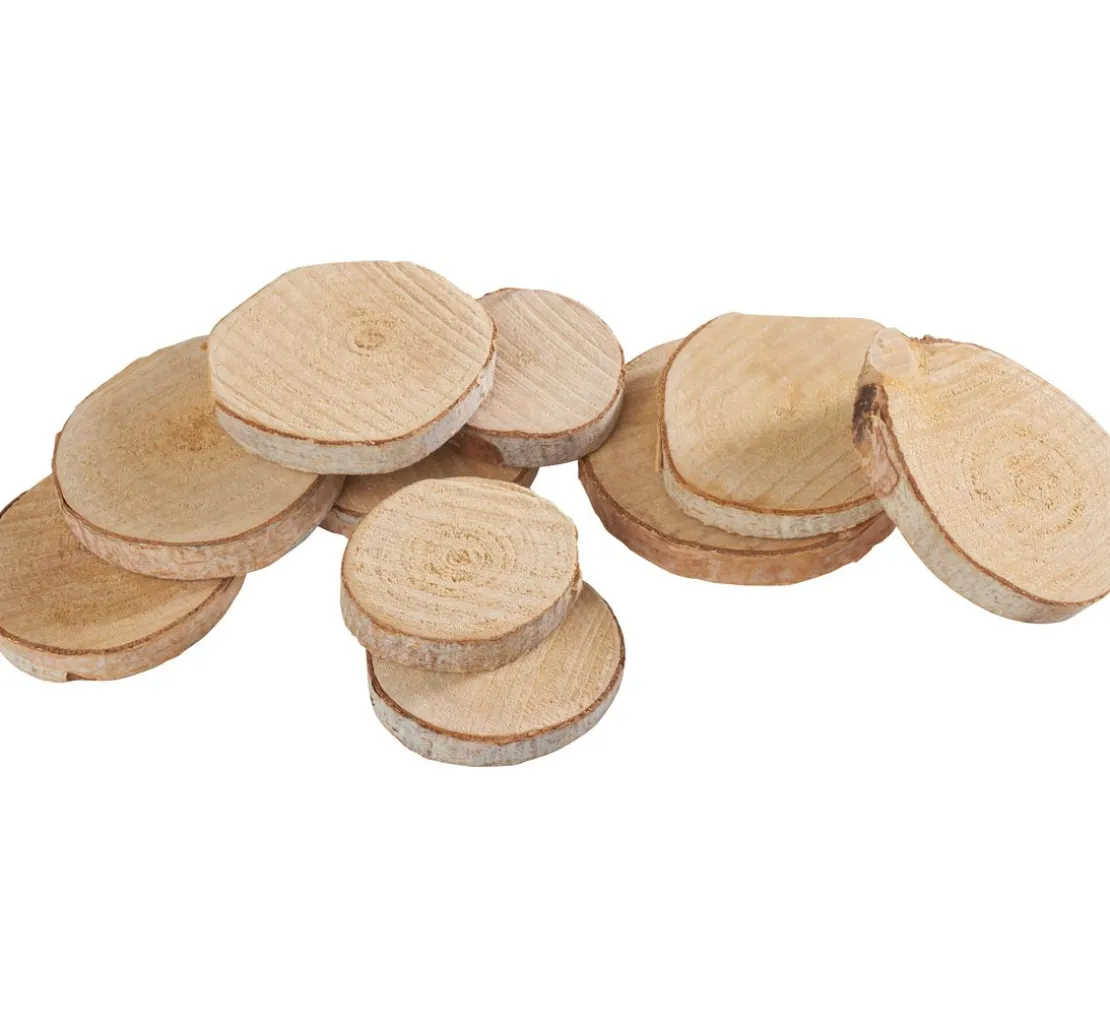 Die Rindenscheiben bestehen aus Holz und haben ein Durchmesser von ca. 3 – 4 cm. Sie erhalten 10 Stück.