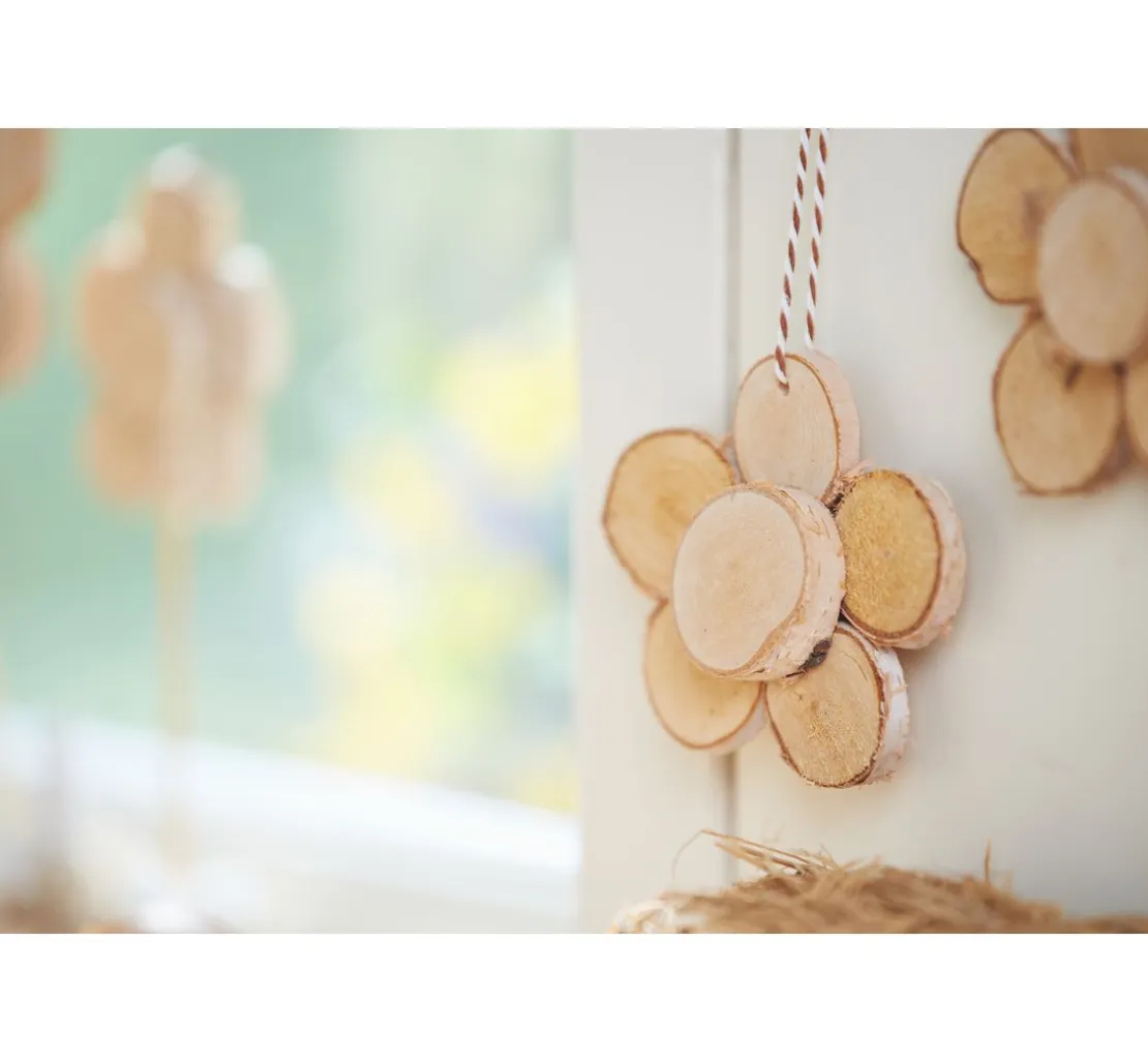 Die Rindenscheiben eignen sich sehr schön zu Verzieren und Schmücken Ihrer Basteleien im Landhausstil, natürlichen Dekorationen mit viel Holz oder anderen Naturmaterialien.