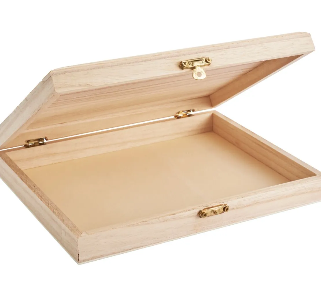 Praktische Aufbewahrungsbox mit kleinem Metallverschluss aus Rohholz.