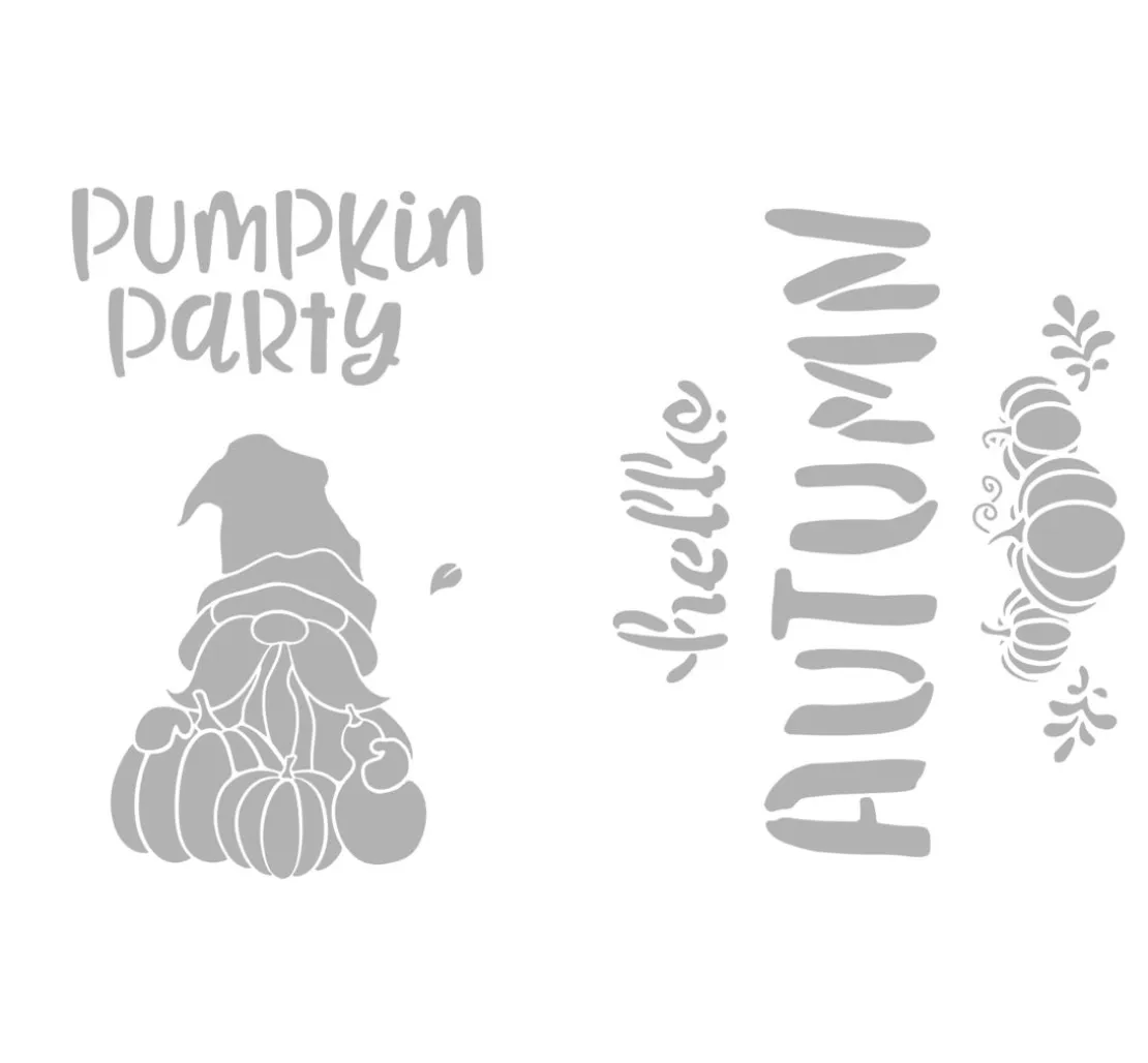 Verleihe deinem Zuhause eine herbstliche Note mit unserem VBS Schablonen-Set „Autumn & Pumpkin“. Mit zwei A4-Schablonen, die charmante Motive wie einen Wichtel mit Kürbissen und die Aufschrift „Pumpkin Party“ sowie drei Kürbisse mit Blättern und „Hello Autumn“ bieten, kannst du kreative Akzente setzen.