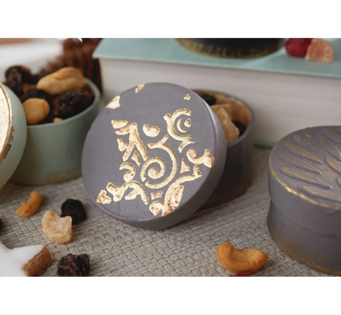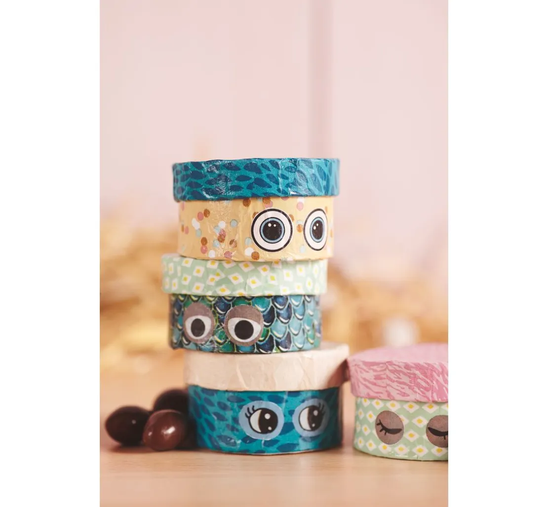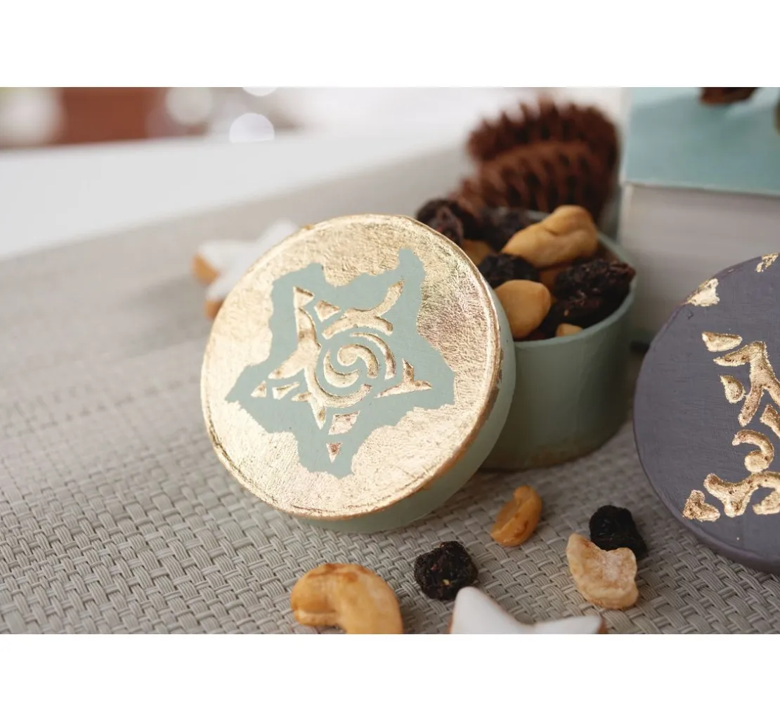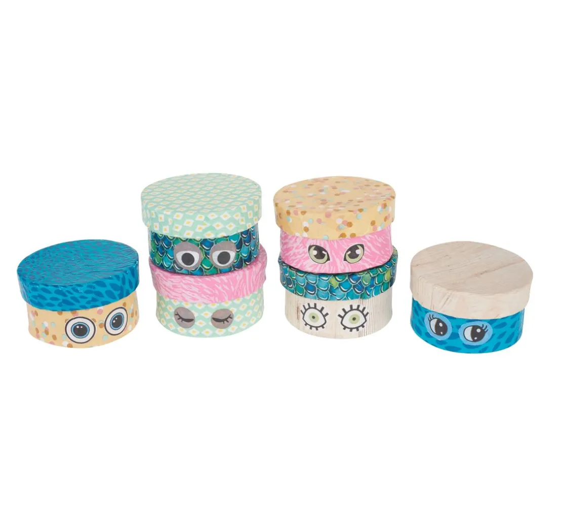 Die Rundschachteln aus Pappmaché haben einen Durchmesser von ca. 6 cm und sind ca. 3 cm hoch. Sie eignen sich ideal als Schmuckschachteln, Geschenkschachteln oder für die Umsetzung vieler kreativen Ideen, wie z. B. Adventskalendern.