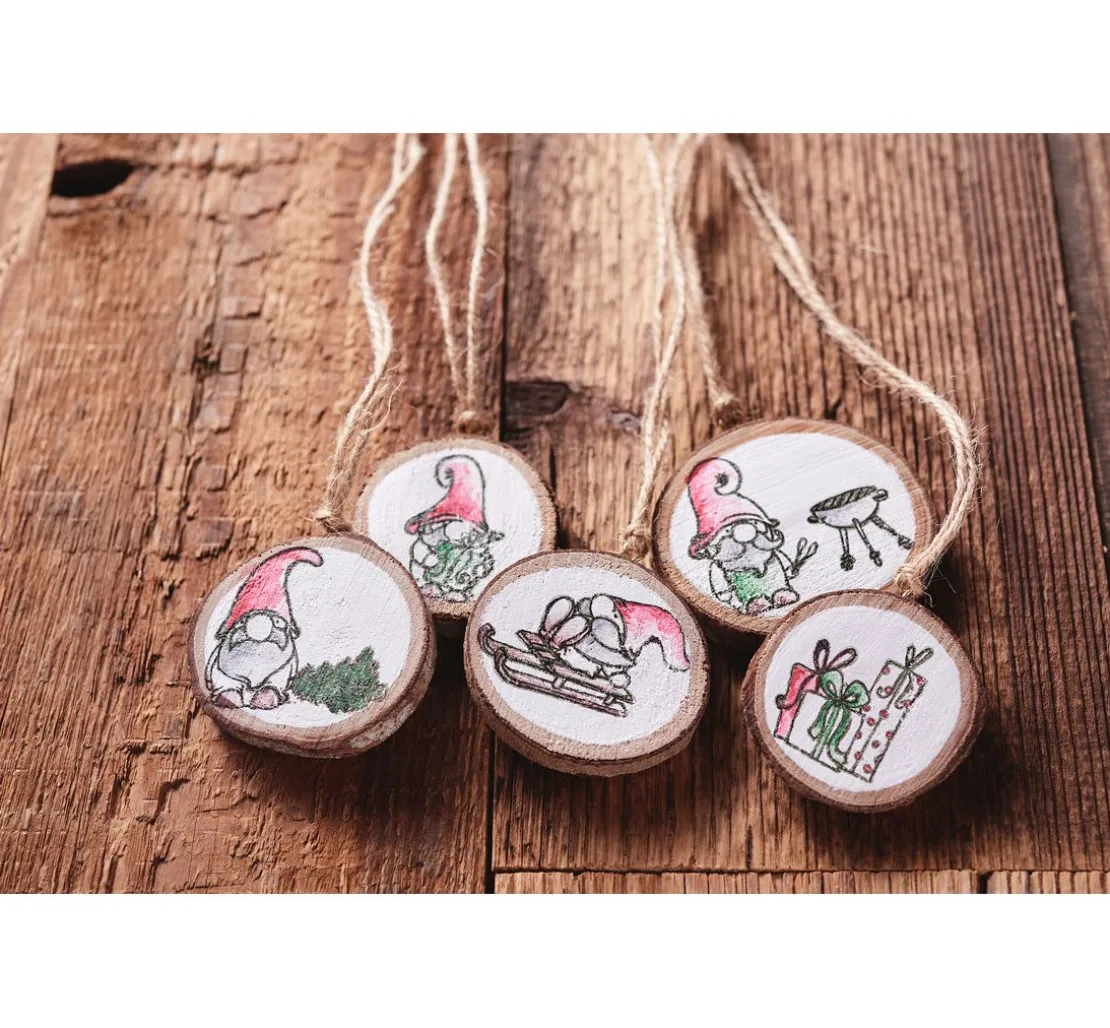 Verschönern Sie mit den Stempel zum Beispiel selbstgebastelte Adventskalender, Scrapbooks oder weihnachtliche Grußkarten. Nutzen Sie die niedlichen kleinen Wichtel, um Ihren Liebsten eine kleine Freude zu bereiten. Die Motive können sowohl kombiniert, als auch einzeln genutzt werden. Zum Stempeln können alle herkömmlichen Stempelkissen verwendet werden.