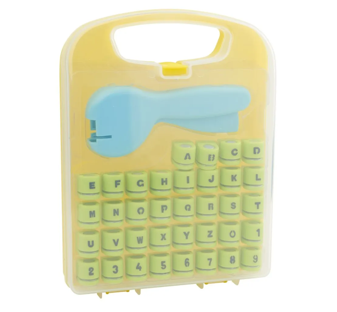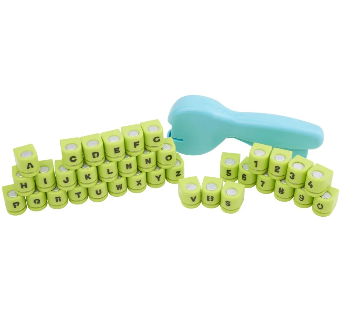 Eine VBS Stanzzange mit 36 Stanzmotiven aus Buchstaben & Zahlen mit einer Motivgröße von ca. 0,7 cm. Die Stanzmotive sind ganz einfach austauschbar und werden einzeln in den Stanzgriff gesteckt. Alle Motive und der Stanzgriff sind in einem transparenten Koffer (20 cm x 27 cm x 5 cm) mit Tragegriff untergebracht.