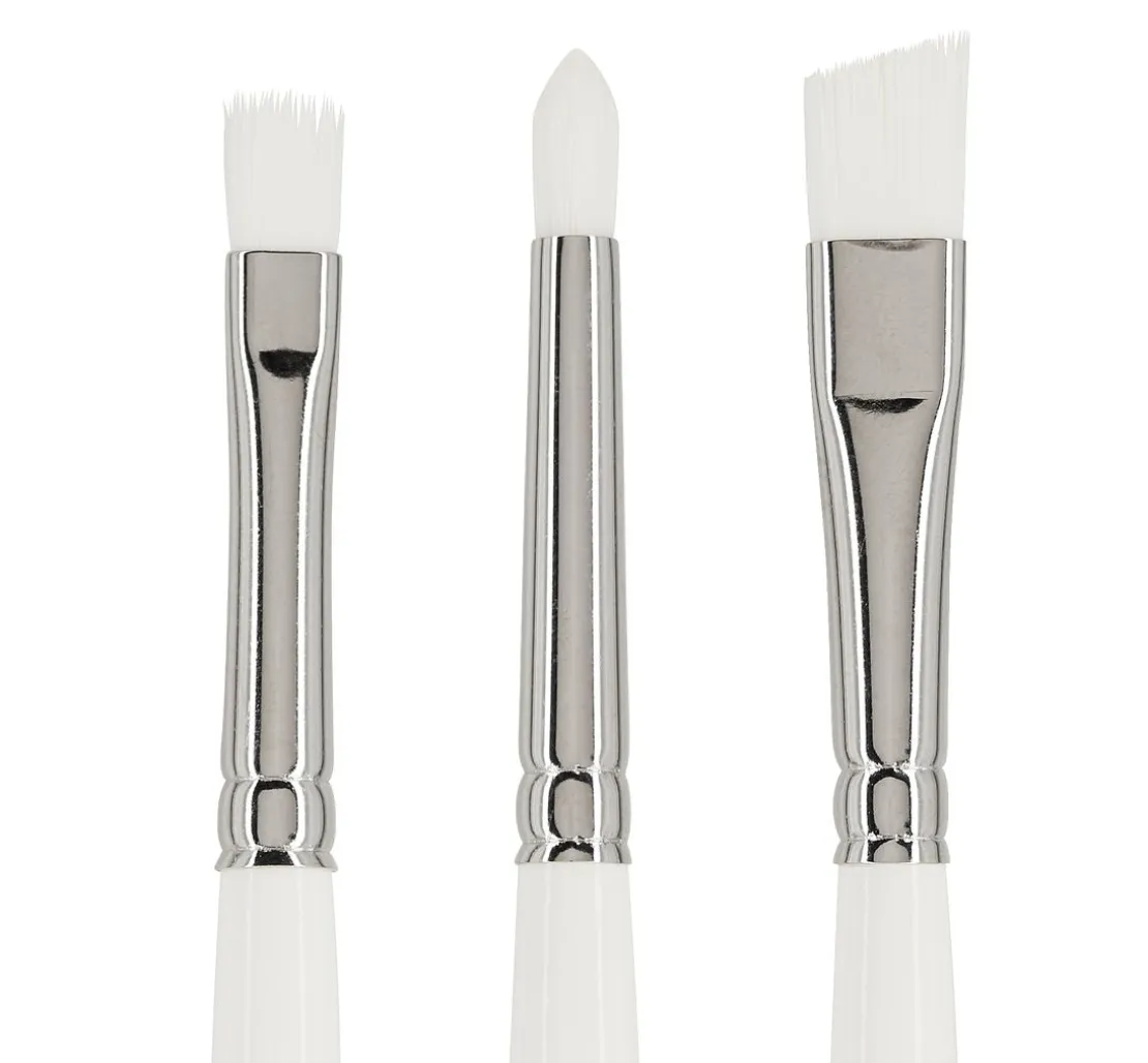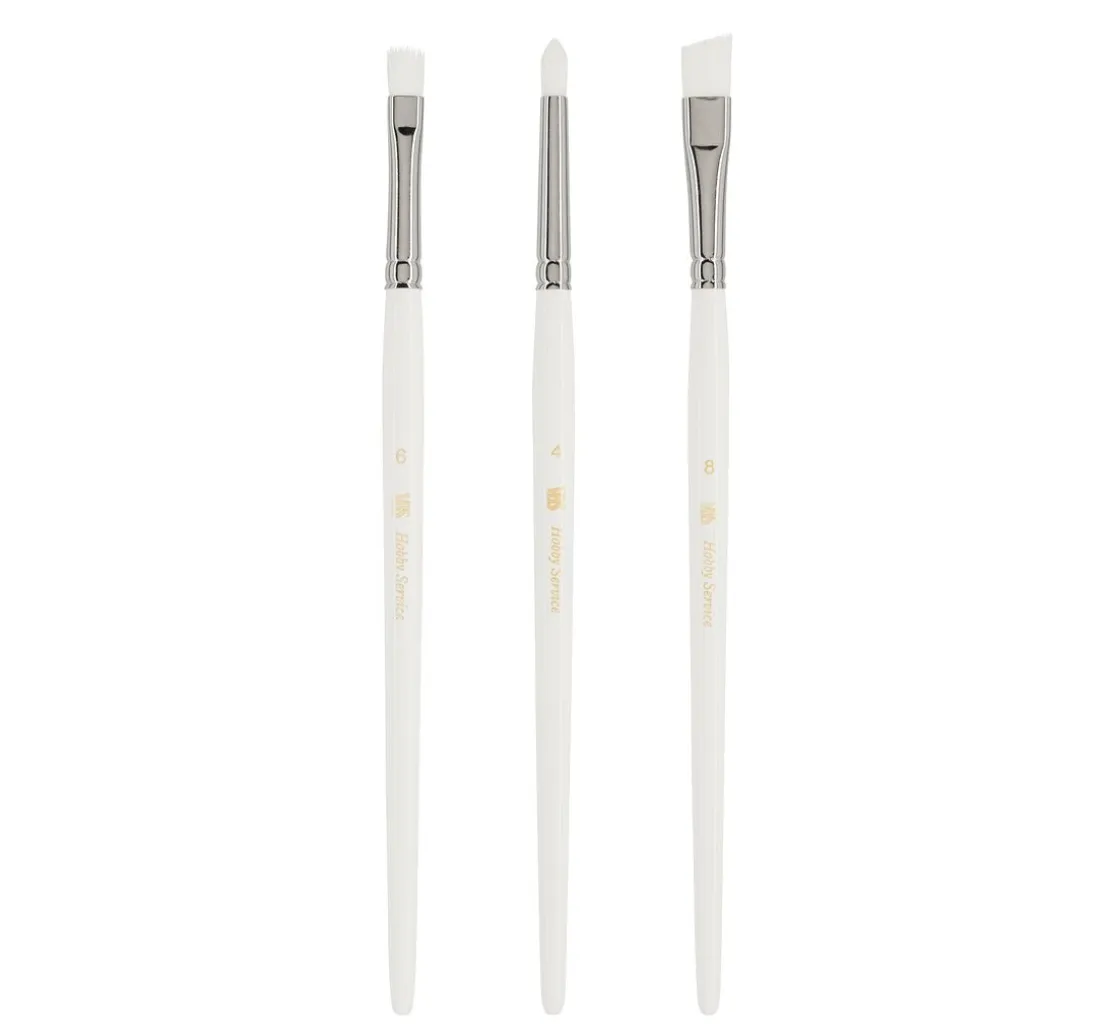 Mit dem 3er-Set erhältst du einen vielseitigen Flachpinsel der Größe 4, einen präzisen Rundpinsel der Größe 6 und einen abgeschrägten Flachpinsel der Größe 8. Diese Kombination ist dein perfekter Partner, egal ob du detaillierte Linien oder flächige Farbaufträge benötigst.