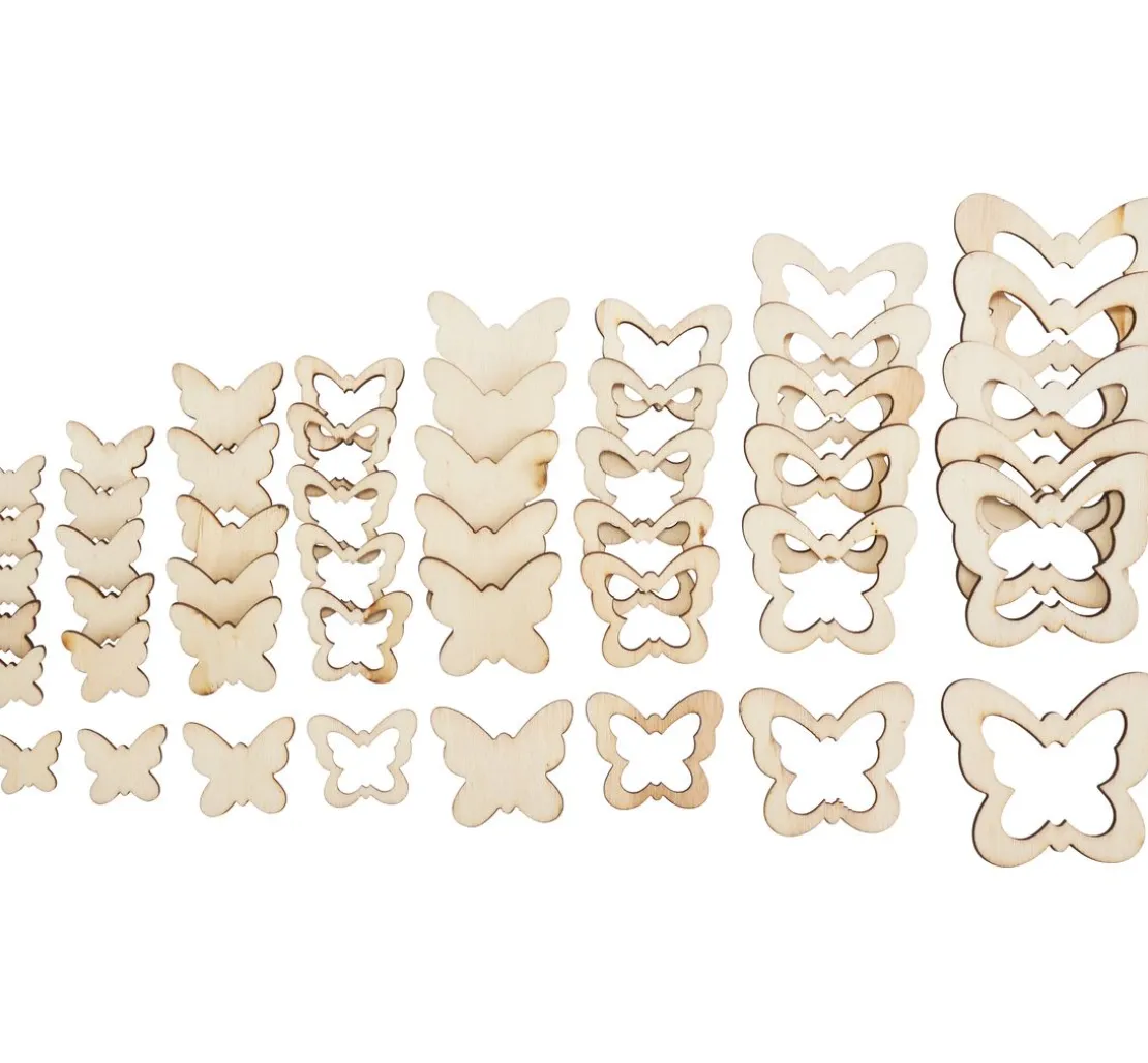 Die vielseitig einsetzbaren VBS Streuteile Schmetterling „Yolli“ in verschiedenen Größen von ca. 1,5 – 4,7 cm und in zwei Ausführungen haben eine Stärke von ca. 2,5 mm. Das gelaserte Holz kann produktionsbedingt leichte Brandspuren an den Kanten aufweisen. Es sind 48 Stück in der Packung enthalten.