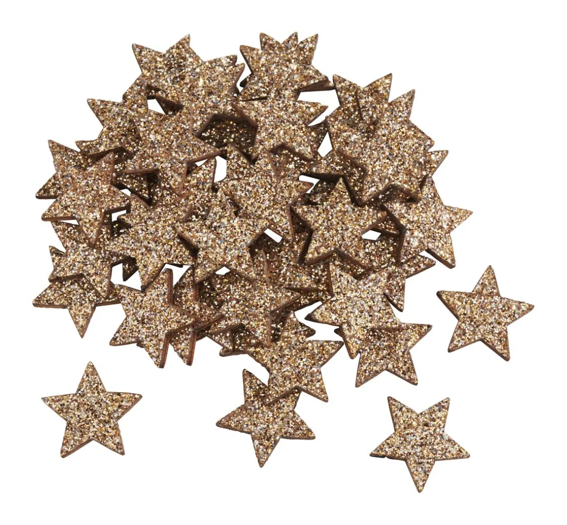 Mit den VBS Streuteilen „Shiny Stars“ kannst du deiner Kreativität freien Lauf lassen und zauberhafte Dekorationen gestalten. Die kleinen Sterne aus Sperrholz sind einseitig mit goldenem Glitzer verziert und eignen sich perfekt zum Verzieren von Karten, Schachteln, Geschenken, floristischen Arrangements oder als Tischdekoration. Mit ihrem Durchmesser von 1,5 cm sind sie ein echter Hingucker und verleihen deinen Bastelprojekten einen glänzenden Touch.