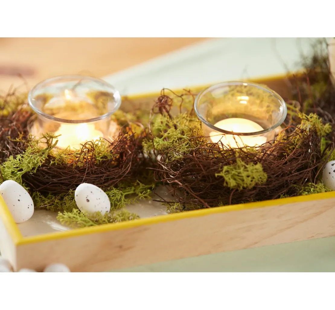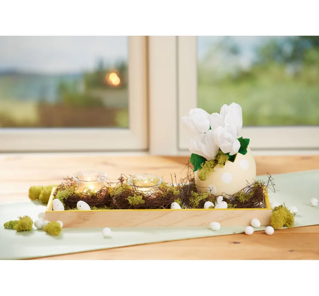 Dieses Tablett eignet sich hervorragend für die verschiedensten Dekorationen. Ob als Geschenk mit einer Flasche Wein, Moossteinen, Holzwolle und Sukkulenten oder für die eigene Tischdekoration mit Kerzen, Muscheln, Sand und Mitbringsel aus dem Urlaub. Die Tablett-Schale können Sie immer wieder neu dekorieren und haben schnell einen hübschen Blickfang im Wohnzimmer.