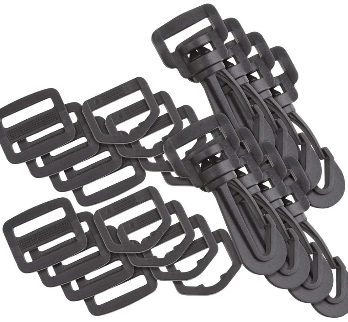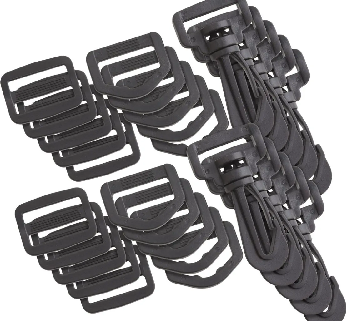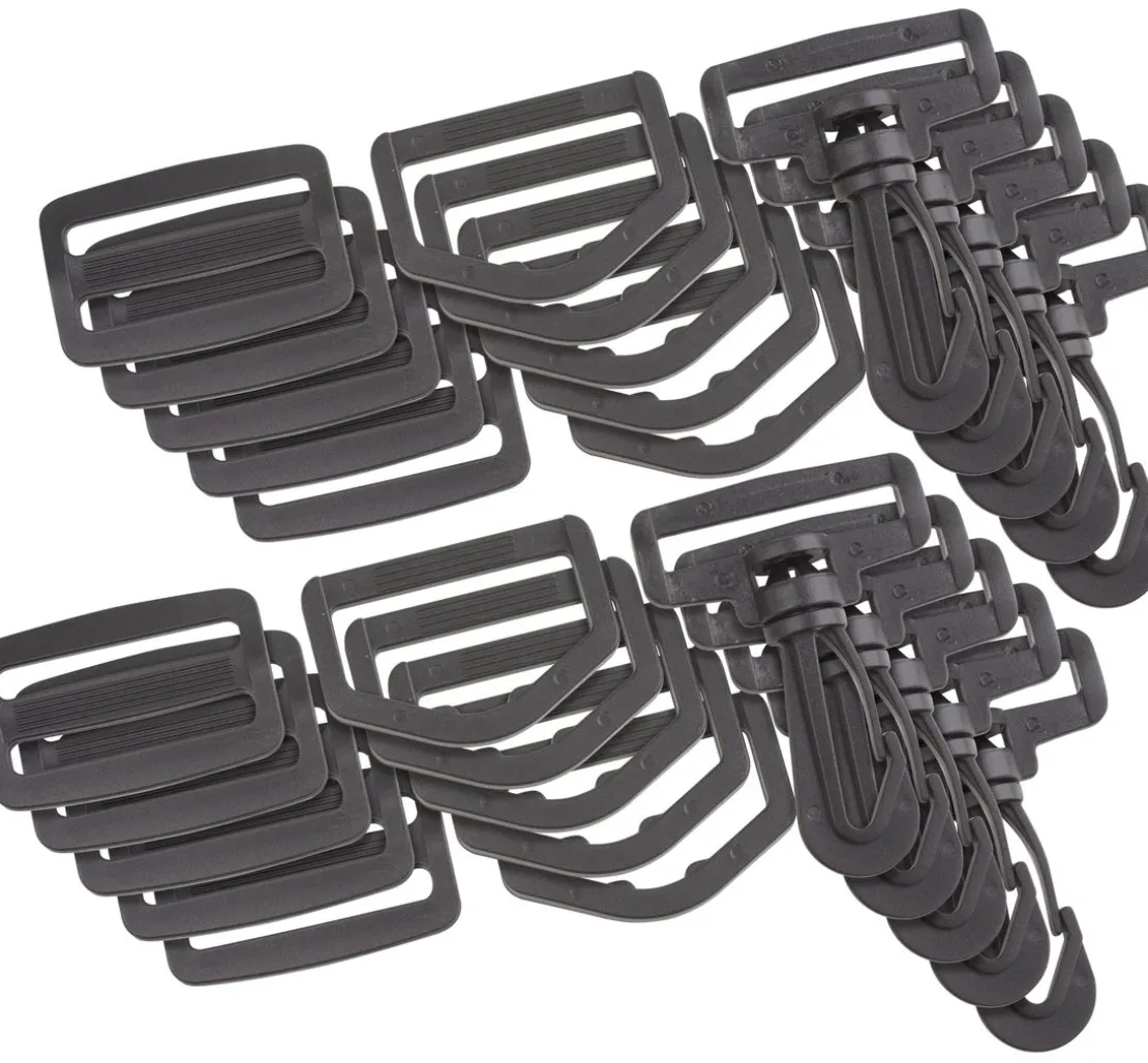 Praktisches 30-tlg. Taschenzubehör-Set in der VBS XXL Packung. Das Set enthält jeweils 10 Karabiner, D-Ringe und Leiterschnallen.