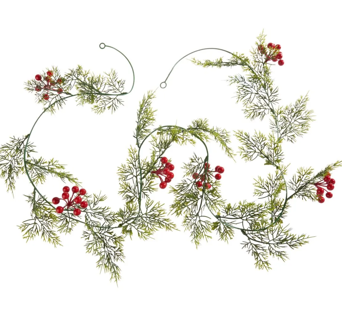 Jetzt kann der Winter kommen! Mit der VBS Thuja Girlande lassen sich winterliche Dekorationen gestalten. Die Kunststoffgirlande ist ca. 200 cm lang und mit roten, glänzenden Beeren mit einem Ø von ca. 1,5 cm verziert. An den Enden der Girlande befindet sich jeweils eine Aufhängeöse mit einem Ø von ca. 1 cm.