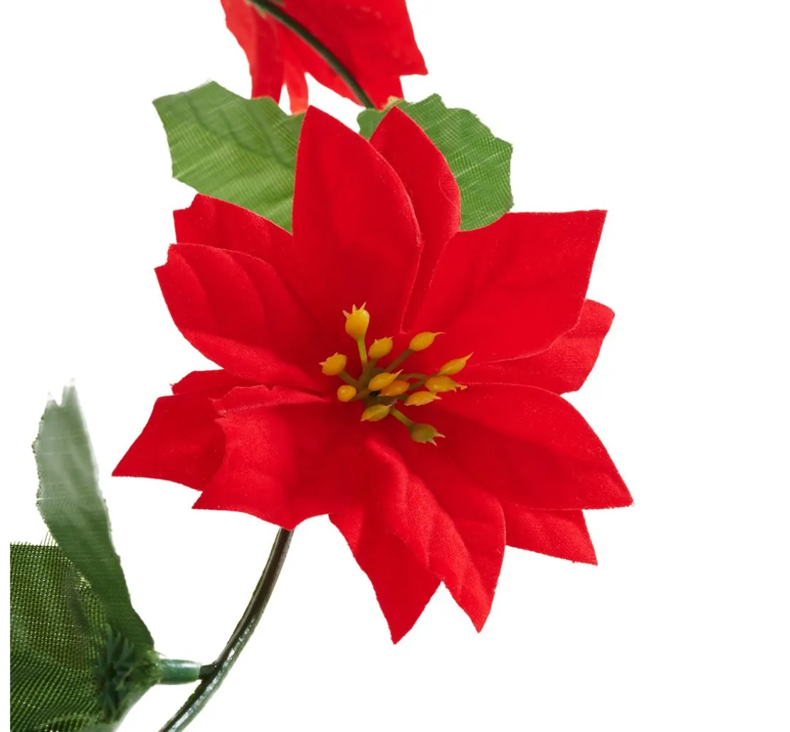 Verschiedene Floristikdekorationen lassen sich wunderbar umsetzen. Passend für die Fensterbank, Kommode oder auch um das Treppengeländer gewickelt. Die roten Blüten sorgen für einen Hingucker in der Weihnachtszeit. Noch mit einer Lichterkette, Anhängern und etwas Kunstschnee vervollständigt, schon ist eine stimmungsvolle Deko geschaffen.