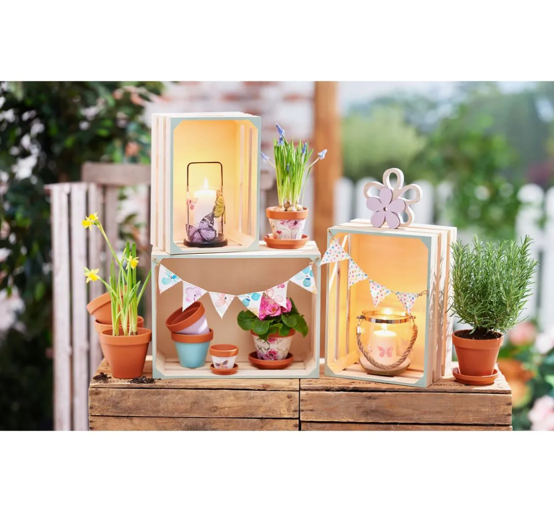 Besonders geeignet ist das VBS Windlicht Laterne „Noir“ für die Servietten- oder Decoupage-Technik. Hierfür benötigst du lediglich einen Decoupage-Kleber zum Aufkleben und einen Decoupage-Lack zum Versiegeln nach dem Trocknen. So kannst du deine Laterne mit deinen Lieblingsmotiven aus Servietten oder Papieren verzieren und ihr eine persönliche Note verleihen.