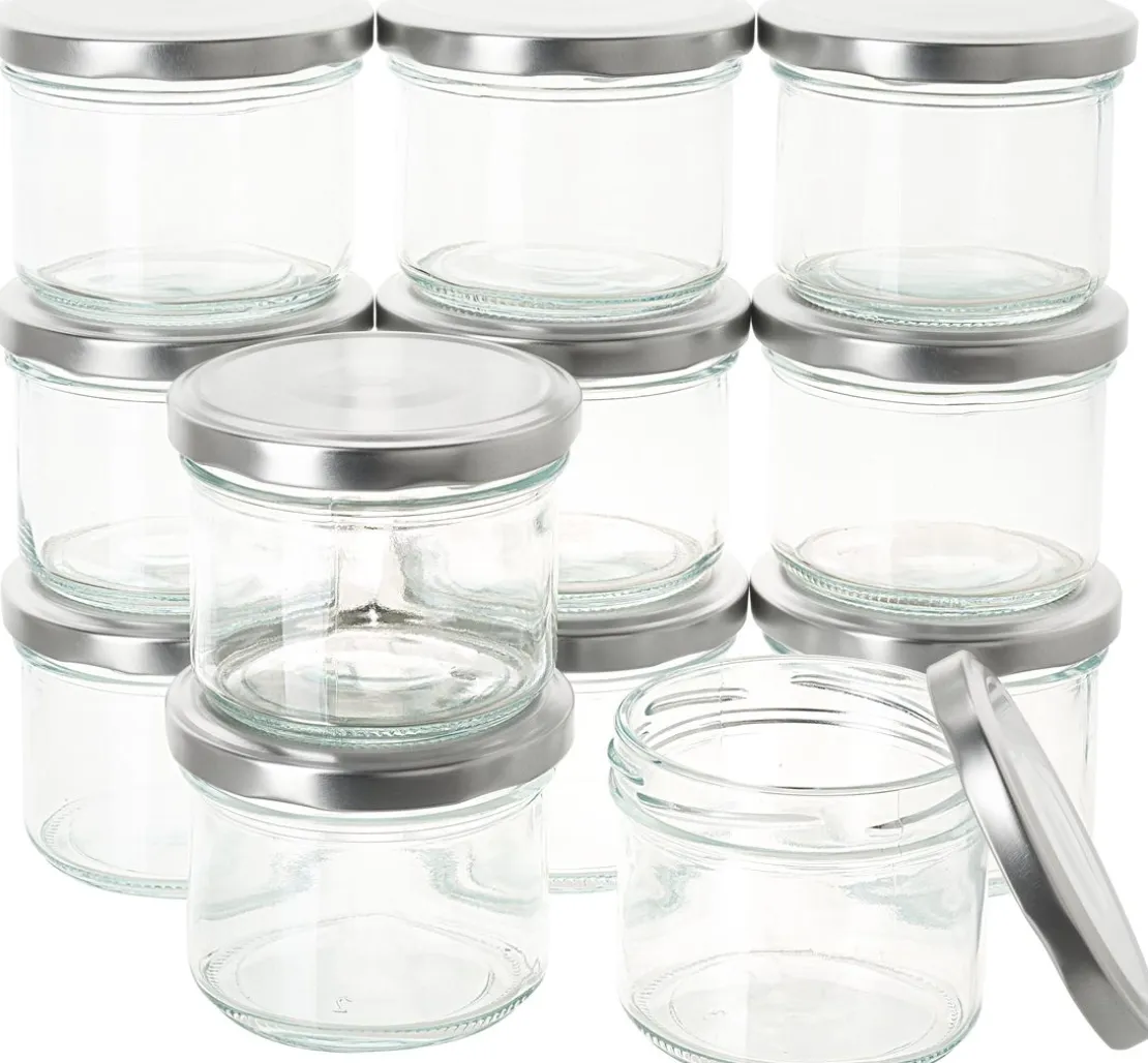Das Material der Gläser besteht aus Glas und der Deckel aus Metall, wodurch eine lange Haltbarkeit gewährleistet ist. Die 12 Gläser können ganzjährig verwendet werden und sind ideal als Verpackung von Süßigkeiten, Keksen oder anderen Leckereien. Auch eine hervorragende Idee als Geschenkverpackung oder Aufbewahrung für Nägel und Büro- und Bastelmaterial. Mit einer Vorratspackung von 12 Stück hast du immer genug davon zur Hand. Verziere die Gläser ganz nach eigenen Vorstellungen mit Strohseide, Servietten, Bastelfarben, Schleifenbändern und Streuteilen. So wird jedes Glas zu einem individuellen Blickfang. Mit ein wenig Kreativität und ein paar Bastelutensilien kannst du aus den Gläsern ein einzigartiges Geschenk für deine Liebsten machen.