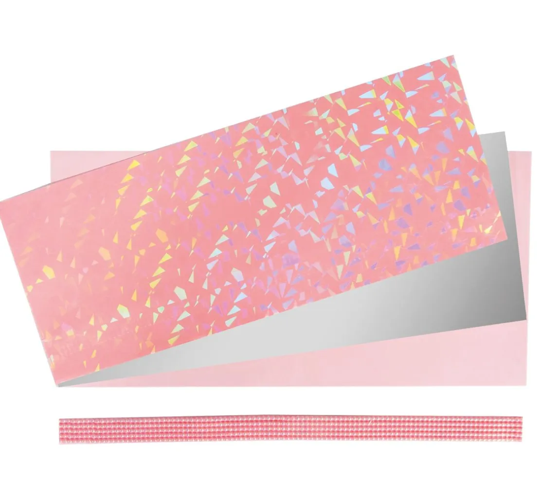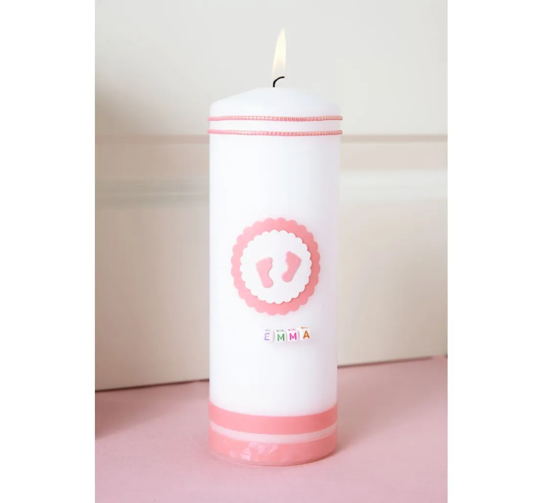 Verzierwachsplatten-Set „Baby Girl“. Diese hübschen Wachsplatten in der Farbe Rosa und Silber sind zum Verzieren von Kerzen.