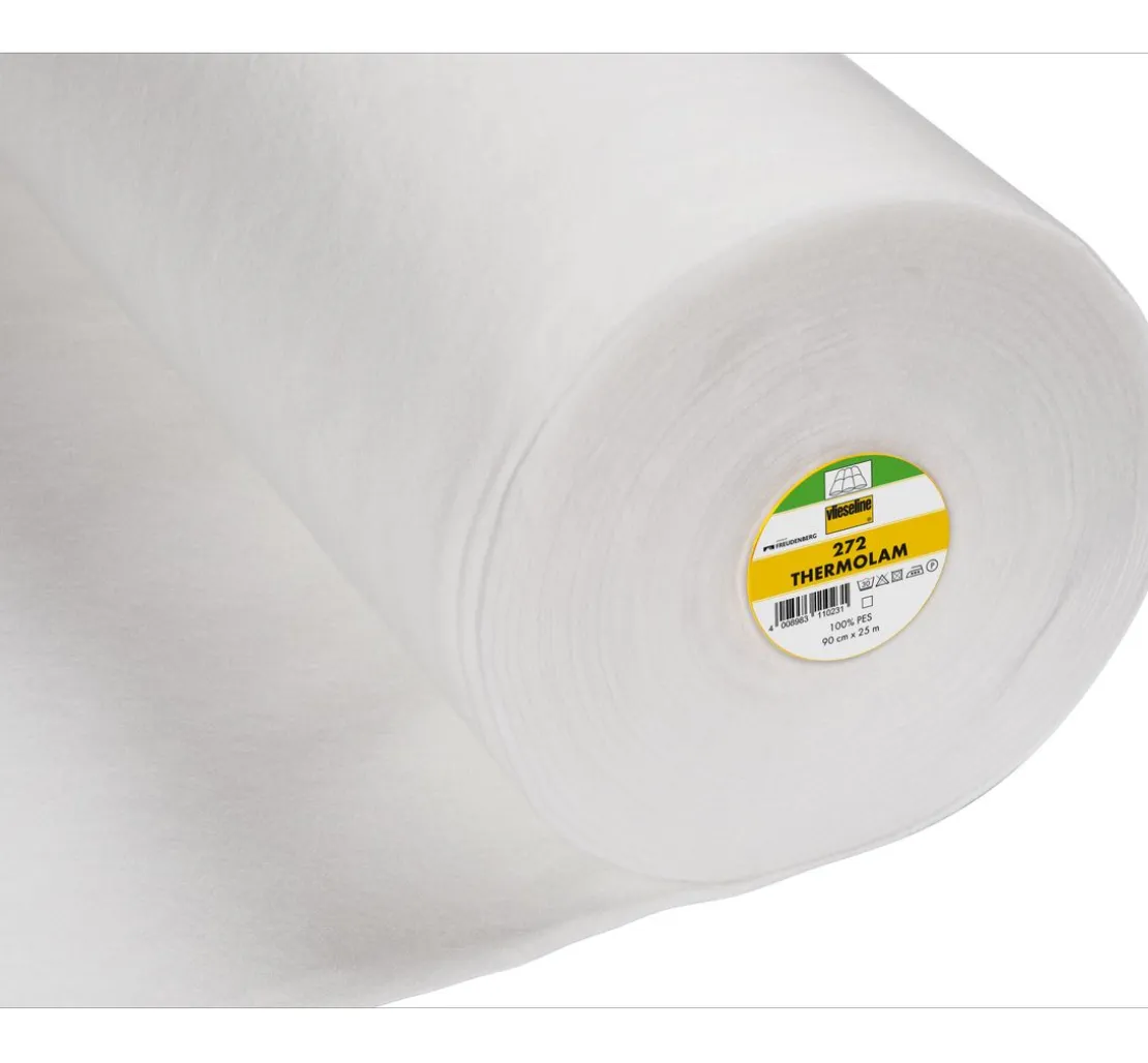 Vlieseline 272 Thermolam ist ein weiches Volumenvlies, fest im Griff, gut vernähbar und bis ca. 180 °C hitzebeständig.